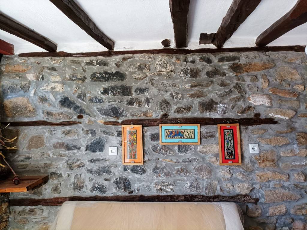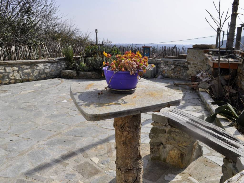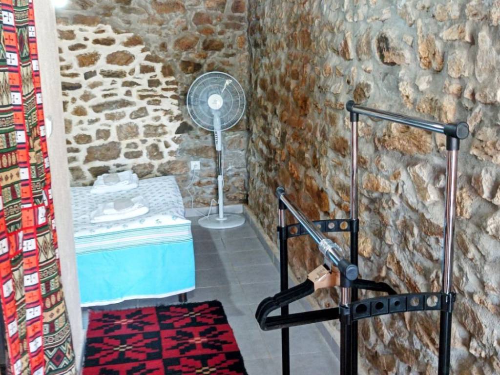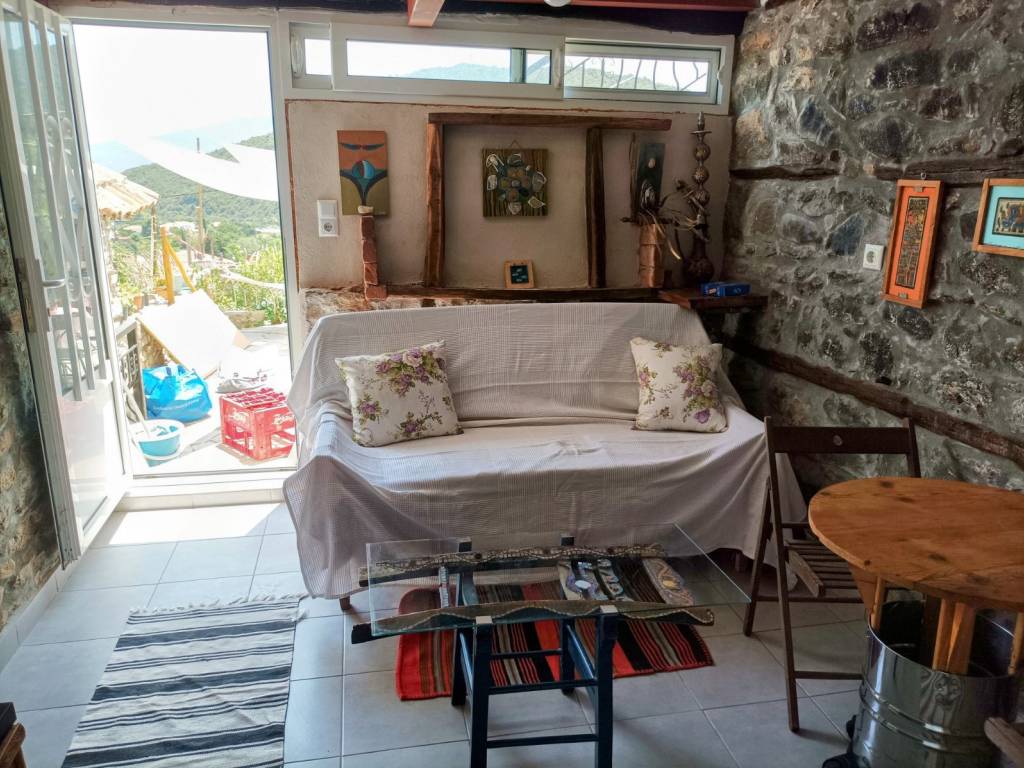 The Racine de pierre studio has an area of 24 m2, located on the ground floor of a traditional house built in 1912 from stone, on the ground floor. It is autonomous with kitchen, sofa, refrigerator, coffee table, bathroom, TV and equipped with all the necessary electrical appliances. Hot water from a solar water heater. Suitable for 2 people (adults), with a comfortable double bed. It has access to the stone-built courtyard where there is a barbecue. The view to the sea and the hills around is excellent. Car parking is free. The sea is 3 km from the village.