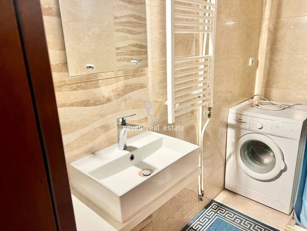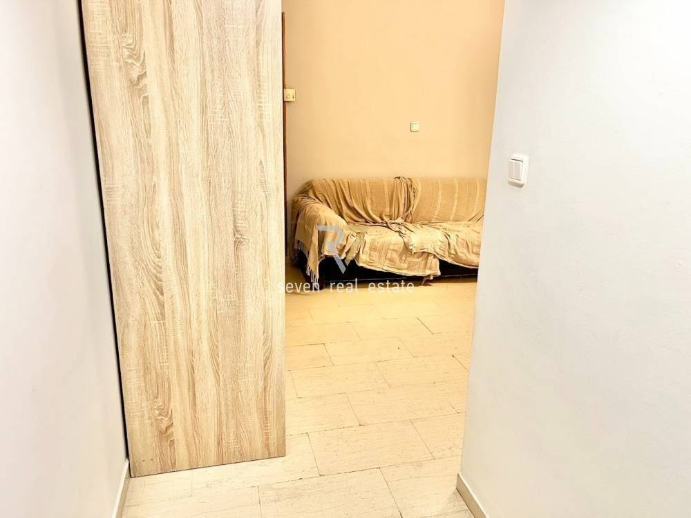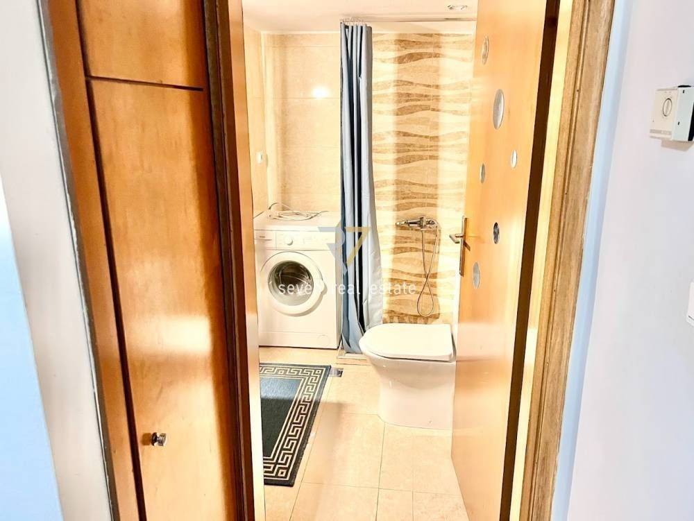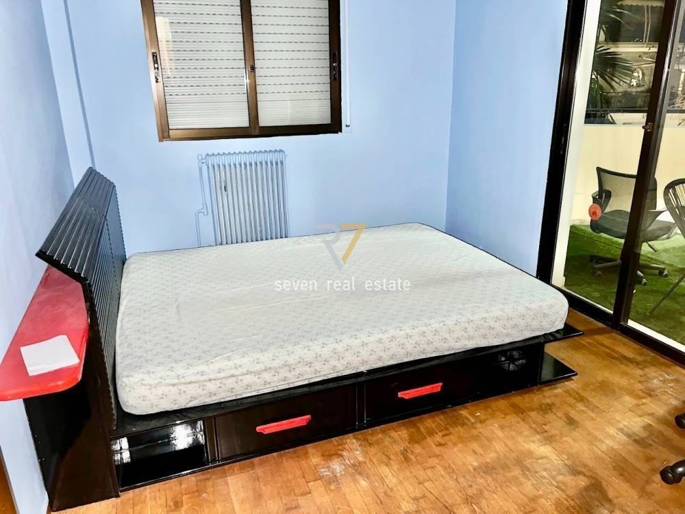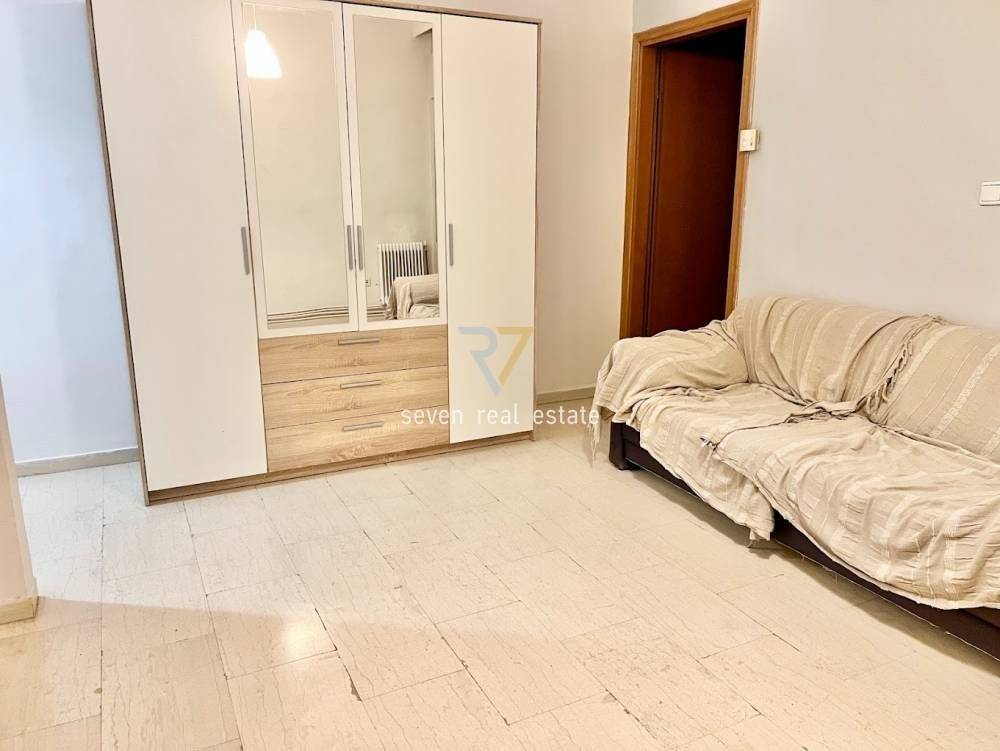 Thessaloniki, Kato Toumpa: Corner studio for rent 46 sq.m. frontage on the 1st floor with elevator and individual natural gas heating. It consists of 1 bedroom, living room/kitchen (with kitchen cabinets that will be fully renovated) and bathroom. It was built in 1990, partially furnished (it has a built-in oven, electric hob, washing machine, wardrobe, living room sofa, bed, desk, terrace furniture) aluminum frames with double glazing, security door, tiled floors and a beautiful communal garden with trees and lawn. It is located in an excellent neighborhood, with direct access to the market and transportation, ideal for students and workers. Price 450€ | Property Code: #38340