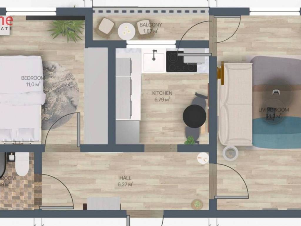 This property features 1 bedrooms, a living room, a kitchen and a bathroom.
