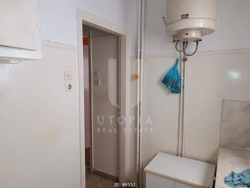 Patisia - Apartment 50sqm bedroom, levels 1, raised ground floor (50sqm, 1 bedrooms, living room, kitchen, bathroom), needs renovation, year built 1970, energy class F, living room, hall, kitchen, bathroom, heating type: central (oil), quiet, dual aspect apartment, luminous, frontage, elevator, loft storage, wooden frames, wood & marble floors, separate kitchen, pets allowed, residential zone, access from asphalt, close to super market (up to 500m), close to bus stop (up to 100m), close to school (up to 500m), close to metro/train (up to 500m).