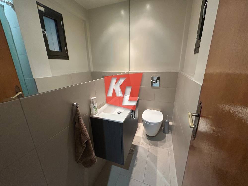 Heating is autonomous with oil, and the property features three brand-new air conditioning units in the bedrooms and the kitchen, as well as ceiling fans in the living room. Flooring consists of marble in the main areas and wood in the bedrooms, offering elegance and warmth. The window frames are brand-new aluminum with double glazing, and the apartment is equipped with a security door and alarm system. Energy class: D.