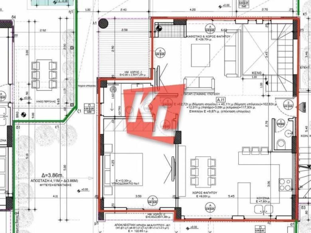 The building is located just 550 m from The Mall Athens and Neratziotissa Station (ISAP & Suburban Railway), and only 350 m from Attiki Odos (Exit 10 – Kymis Avenue). It is close to an educational complex, in a quiet neighborhood with direct access to shops and public transport.
