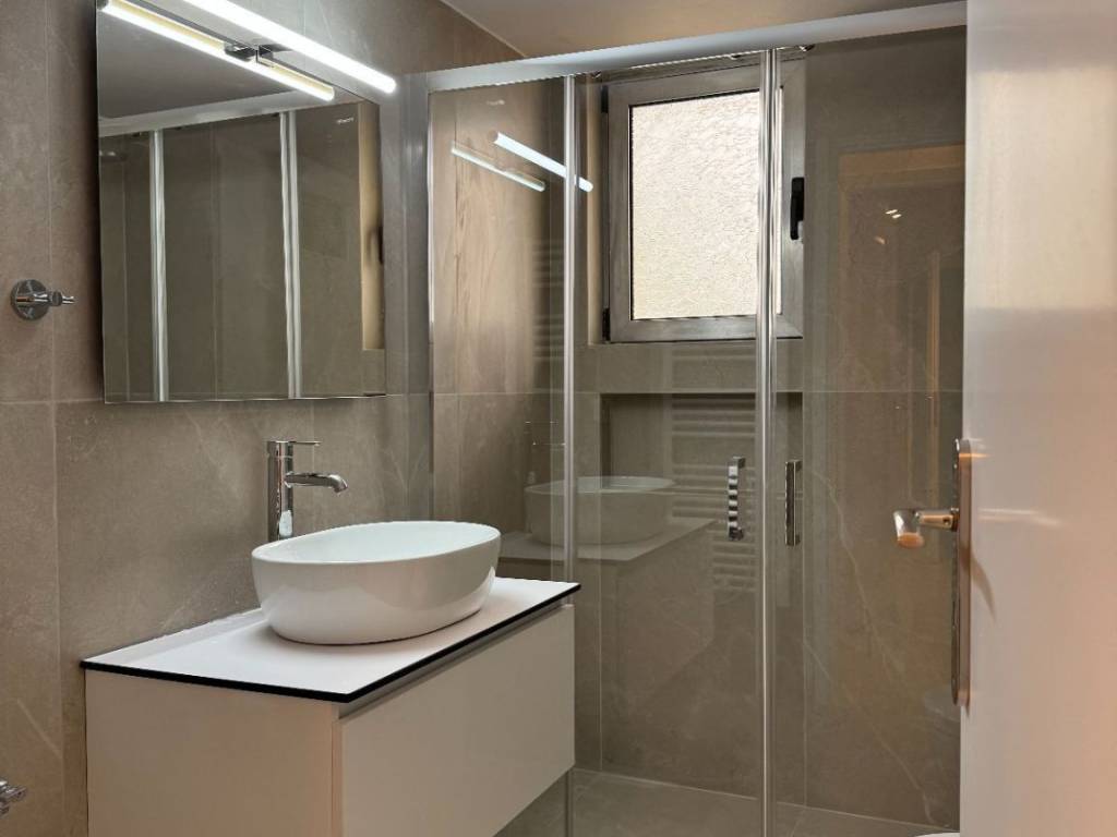 Freshly renovated, this attractive full-floor apartment is within walking distance of Glyfada’s center. It features 2 bedrooms, 1 bathroom, and a separate guest WC. The modern kitchen is fully equipped with electrical appliances. Additional storage space available above the bathroom. A spacious wraparound veranda, with trees in front, offers a pleasant outdoor setting. The apartment also includes 1 covered pilotis parking space.