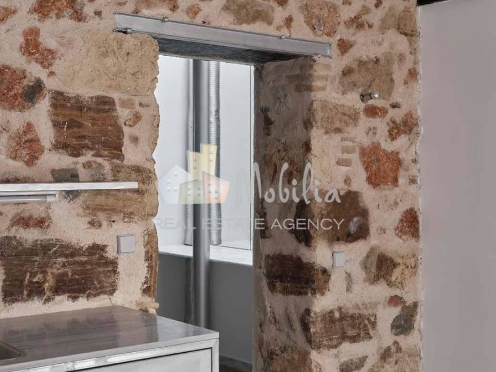 At the foothills of Strefi Hill, in one of the most distinctive parts of Neapoli, Exarchia, this ground-floor residence has been thoughtfully reconfigured with respect for its history. Housed within a building dating back to 1924, the property has been redesigned to preserve its original character while meeting contemporary living standards. Natural materials define the space: stone, wood, and mosaic flooring form the core aesthetic, complemented by carefully integrated modern elements in lighter materials, creating a calm and balanced atmosphere. The main living area is arranged in an open-plan layout, comfortably accommodating both the living room and the kitchen, with ample natural light. A secondary zone includes a WC, which is naturally illuminated through an internal lightwell. The bedroom is set apart, offering privacy and functionality, with direct access to both a dedicated laundry area and a bathroom with a shower. From the bedroom, there is access to a private courtyard—an outdoor space that provides a sense of quiet and seclusion within the city. Within the courtyard, there is an independent room that can be used flexibly, whether as a workspace, guest room, or creative studio. A home with character, blending the authenticity of old Athens with a more contemporary and minimal approach to living. The property is equipped with electrical appliances and air conditioning throughout. Mobilia Real Estate, contact phone: 2107563200, 2107563202, email: info@mobilia.gr, website: https://www.mobilia.gr