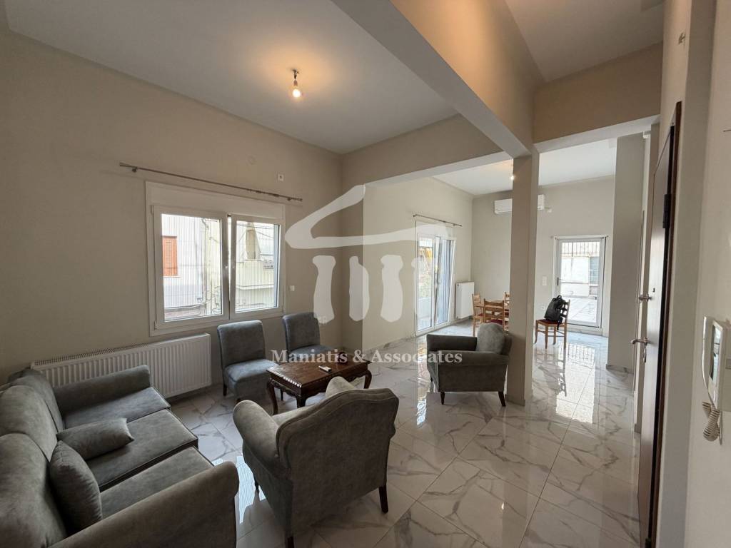 Apartment for rent on the 1st floor (without elevator), in the Agia Sofia area, with a total area of 87 sq m. This is a renovated, corner, floor apartment, frontage, bright, airy, sunny and bright, consisting of 2 bedrooms, 1 bathroom, independent kitchen and 2 living rooms. The property is available fully furnished and with electrical appliances, ready to move in. It has individual heating with natural gas, 3 air conditioners, solar water heater, aluminum frames with double glazing, electric roller shutters, screens and a category B energy certificate, while the floors are tiled. In addition, it includes a security door, video intercom, fiber optics and a large internal terrace, ideal for moments of relaxation. It is located in a quiet neighborhood, close to Maniatika Metro, public transport stops, schools, square, super market, market and the port, offering direct access to all basic infrastructure. Rental price: €750. In order to make a property recommendation, it is required to present a police ID or passport from all persons who will attend the appointment, during the process of signing the brokerage order. For more property options and a detailed presentation, you can visit our website www.e-mesitis.com. Maniatis & Associates, Contact Phone: 2104190703, email: info@e-mesitis.com