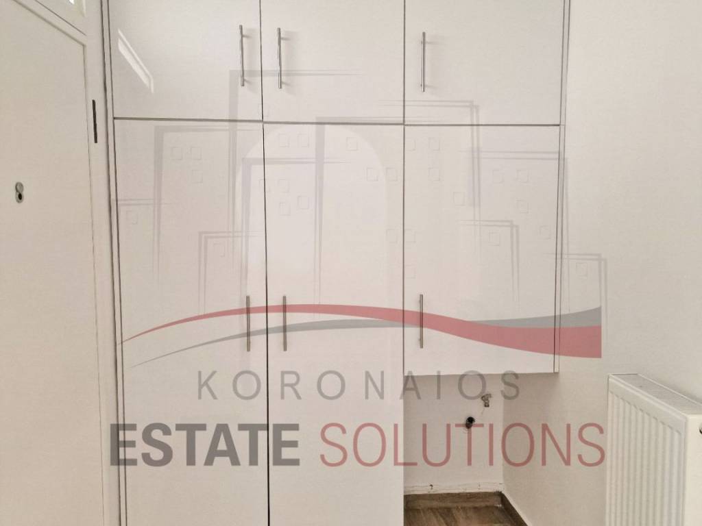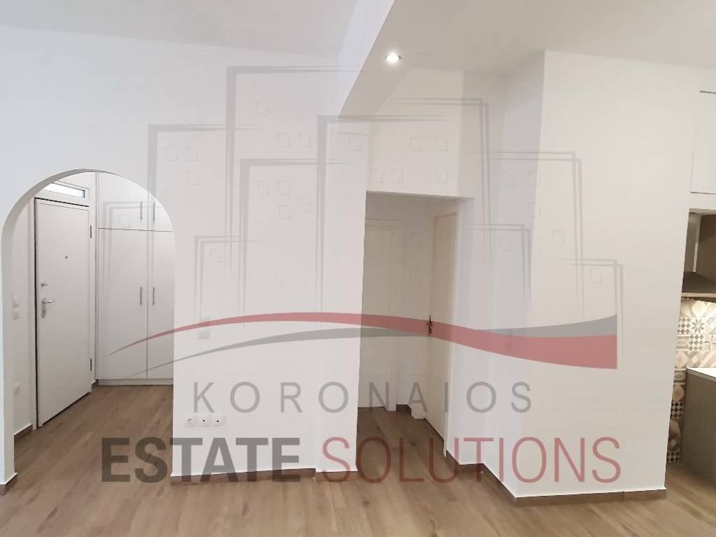 Fully renovated apartment in excellent condition of high energy class, with excellent layout. It has a security door, alarm system, double aluminum frames with screens, autonomous gas heating and air conditioning, open plan kitchen, large wardrobes and a spacious loft for storage space, bathroom with shower, a bright bedroom with access to the courtyard. It is located in a quiet neighborhood close to the market, schools, super market, square and the suburban railway of Agioi Anargyroi and is immediately available for exploitation or owner-occupancy.