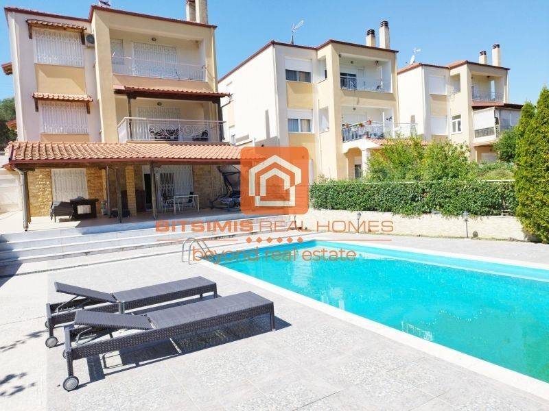 Property Code: 1-491 - Maisonette FOR RENT in Mikra Plagiari for € 1.350 . This 240.00 sq. m. furnished Maisonette is on the Ground floor and features 5 Bedrooms, an open-plan kitchen/living room, 3 bathrooms and 2 WC. The property also boasts Heating system: Individual - Petrol, tiled floor, unobstructed view, Window frames: Aluminium, Armourplated door, parking, a storage unit sqm, garden, fireplace, swimming pool, A/C, alarm system, electrical appliances, awnings, insect screens, double-glazed windows, entry stairs, BBQ, playroom, open space, internal staircase, balconies: 50 sqm. The building was constructed in 2012 Plot area: 2000 s.q. . Building Energy Rating: C