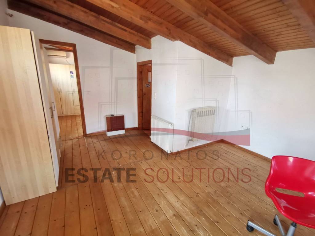 Apartment of 146sqm with attic, in a quiet neighborhood, 700 meters from Kifissia Metro Station. On the 1st floor of 103sqm, we find a large open plan living room with dining room with fireplace, kitchen with breakfast bar, 2 bedrooms, 1 bathroom and verandas with views. Going up the internal staircase, we find a fully functional attic of 43sqm with great height, 1 bedroom, bathroom and living room or office, ideal for a big child who wants more autonomy. The heating is autonomous with oil boiler, has air conditioning, PVC frames with double glazing.
