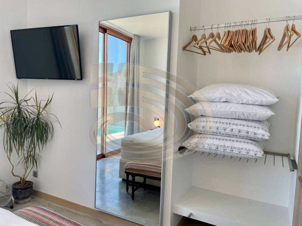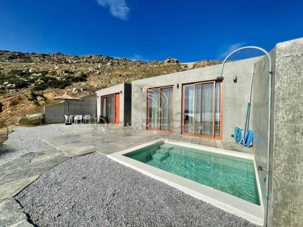 Just moments from the turquoise waters of Agia Paraskevi Beach in Karystos, this newly completed (2025) eco-conscious earth villa complex offers a rare combination of contemporary design, sustainability, and flexibility on a 677.54 sq.m plot within city planning. The property consists of two autonomous design villas (97.10 sq.m and 72.55 sq.m) with a total built area of 170 sq.m, featuring: 6 bedrooms 4 full bathrooms + 1 WC 2 fully equipped kitchens 2 living areas 2 private plunge pools (6 sq.m each) Built with high-quality materials such as concrete, glass, steel, and pressed cement, the villas blend seamlessly into the natural landscape while offering open views toward the Aegean Sea and the Cycladic horizon. The complex can remain as two independent residences or be unified into a single 205 sq.m two-level villa (including 35 sq.m additional building allowance) via interior staircase or elevator. The sale includes the 35 sq.m surplus building right, as well as selected furniture and electrical appliances. Designed with sustainability in mind, the property features geothermal energy and autonomous air-conditioning throughout, rooftop greenery, storage areas, backyards, and car access ramps to all entrances. Located just 10 minutes from Karystos town and approximately 1.5 hours from Athens, this unique earth complex is ideal as a private retreat, dual-family residence, or boutique investment opportunity. Further details available upon request.