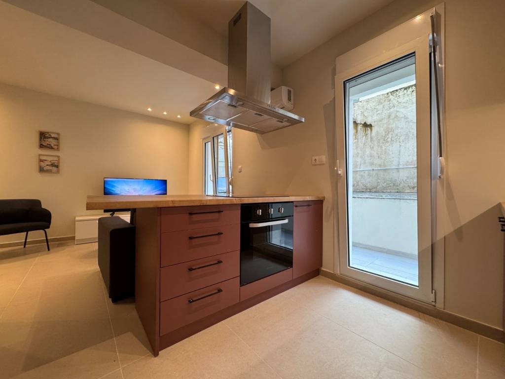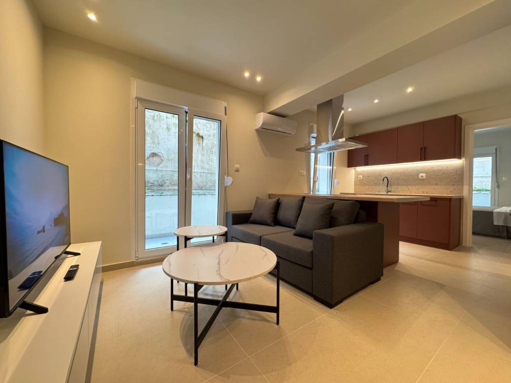 A beautiful and fully renovated 50 m2 lower ground floor apartment located in the area of Sepolia. The apartment consists of a comfy living room with an open plan kitchen, a bedroom and a bathroom. It is fully furnished and equipped with all the electrical appliances. Extra features include a security door, double glazed with aluminum frames, new electrical shutters, mosquito nets and two A/C units.