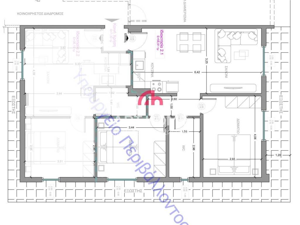 Trilocale ottimo stato, primo piano, Nea Elvetia, Charilaou
