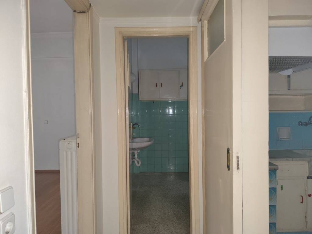 Interior, comfortable one-bedroom apartment in Kypseli, located at 56 Kypselis Street, on the second floor. It consists of an entrance hall, living room, one bedroom, bathroom, and kitchen. The property requires renovation. ESTIMISI Real Estate Agency – respect for the client, consultancy, and prompt service