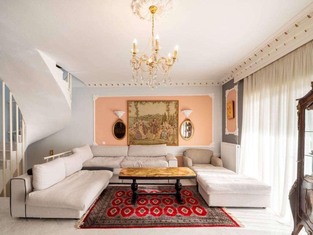 This is a noteworthy three-level maisonette built in 1993, with a private garden and a highly functional layout, ideal for families seeking comfort, independence and quality living in a residential setting. The home is arranged over three levels and offers flexible use, fully meeting the needs of a modern family. On the first floor, there is an entrance hall leading to the main living area, where the living room with a fireplace creates a warm and welcoming atmosphere, complemented by the dining area and the kitchen, while a WC serves this level. The second floor, fully renovated, provides a modern and elegant resting area, with a spacious master bedroom featuring a private bathroom and a large wardrobe, as well as two additional bedrooms with built-in wardrobes and another bathroom serving them. On the ground floor there is an additional sitting area with an open-plan kitchen, one bedroom and a bathroom, adding autonomy and making the level ideal for guests or independent use. The property includes two parking spaces and ample storage areas, ensuring practicality and organization in everyday life. A home with timeless character and renovated upgrades, combining privacy, functionality and multi-use potential, making it a particularly attractive option for premium clients. Location: Panorama is located east of Thessaloniki, at the foothills of Mount Chortiatis and at an altitude of 250 meters. Unique Features: Panorama, due to its stunning location as it lies within a beautiful forest, with panoramic views over the entire Thermaic Gulf, is considered one of the most privileged areas of the wider region, offering a wide range of high-specification residences with distinctive aesthetics. The area also has its own (municipal) open-air summer cinema, a swimming pool, and an Olympic-standard gym. Panorama hosts three public primary schools, one middle school, as well as many private schools of all levels. Accessibility: Panorama is only 14 kilometers from the center of Thessaloniki. Public transport to the city center and to other areas is provided by OASTH bus line 58. Investment Potential: Panorama maintains strong investment interest. It is a purely residential area of middle- and high-income residents, and in recent years there has been a significant increase in the construction of luxury residences and single-family homes, as a result of the country’s socioeconomic development until recently.