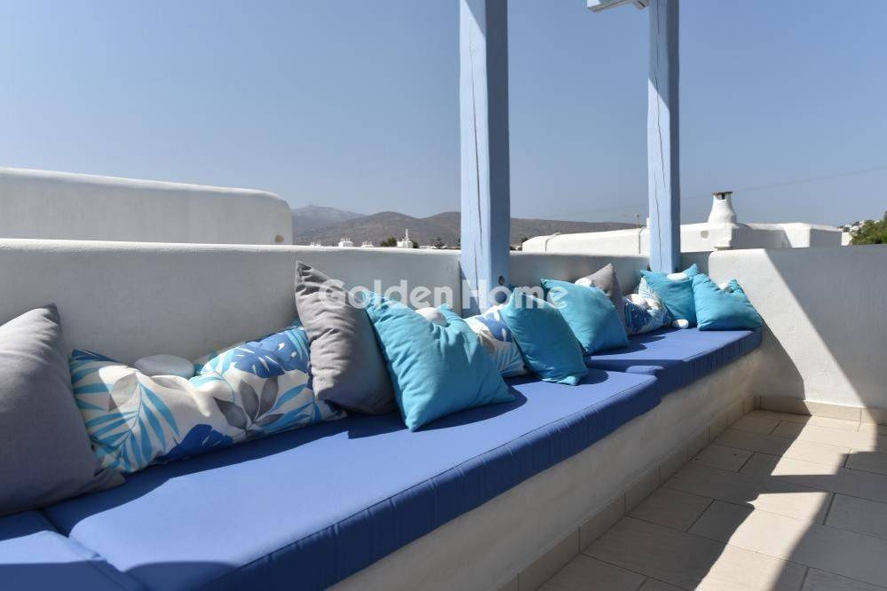 Detached Maisonette in Logaras Beach, Paros, divided into three levels (basement, ground and upper level). It can accommodate up to eight people in 4 bedrooms on the upper level and the basement and each level has its own bathroom. On the ground floor there is a fully equipped kitchen with oven, microwave, refrigerator and dishwasher, as well as a very spacious living room with TV. In addition, on the upper and ground levels you can find two very beautiful and spacious verandas. The property is part of a modern construction, which consists of eight individual houses, located in the village of Logaras, on the eastern coastal side of the island of Paros, approximately 100 meters from the beautiful blue flag beach of Logaras. For Sale, maisonette, Full Bathrooms: 2, Half Bathrooms: 1, Living Area: 121 Sqm, Rooms: 5, Year Built: 2008, Holiday Home, Air Conditioning, Balcony, Furnished, Internal Stairs, Floor Number: Ground Floor, Facade, Pets Allowed, Kitchens: 1, Joinery: Aluminium, Floor Type: Ceramic Tiles, Levels: 3, Heating Controller: Autonomous, Heating Medium: Current, Energy Class: E, Distance Sea: 100