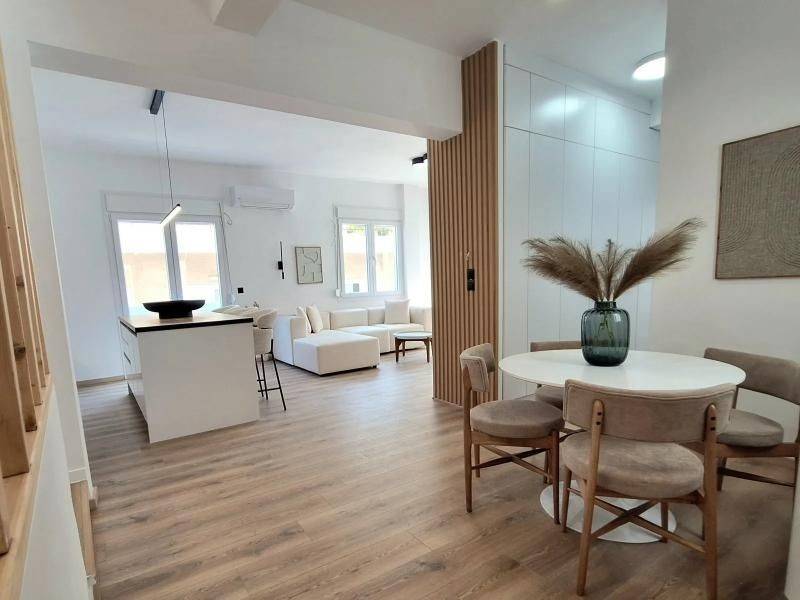 In the highly sought-after area of Neo Psychiko, just a 5-minute walk from Ethniki Amyna metro station, a unique 115 sq.m. maisonette is available. Fully renovated in 2025 and furnished with modern aesthetics, it features top-quality appliances and a contemporary design.