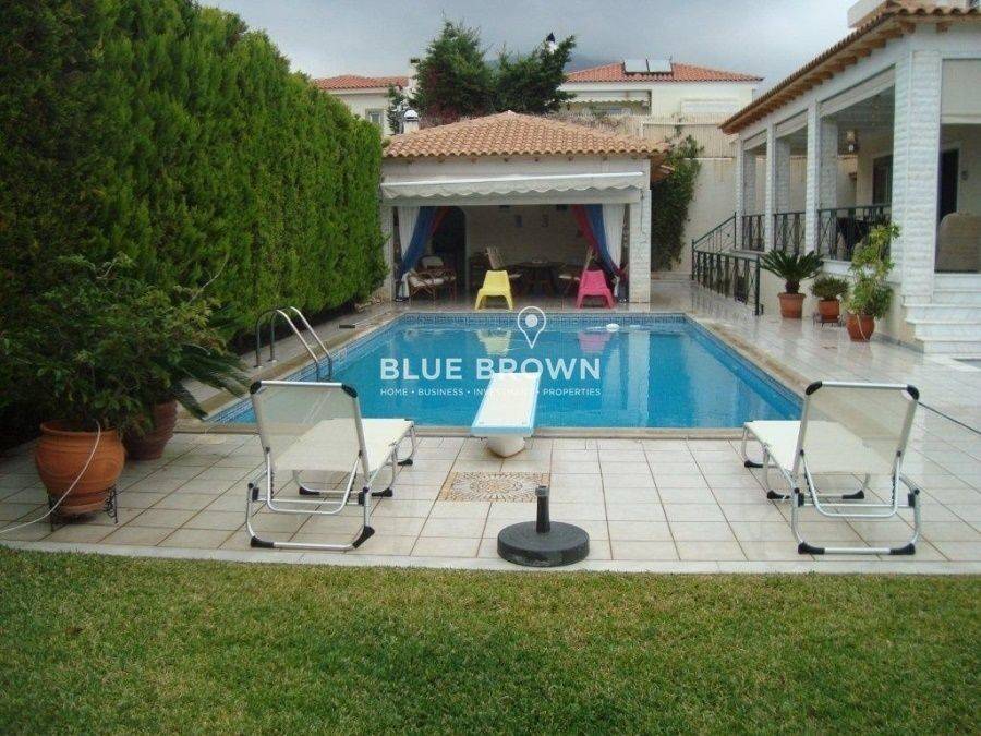 In Eastern Attica, in the area of Lagonisi, a luxurious and fully furnished detached house of 567 sq.m. is offered for sale, set on an 800 sq.m. plot. The residence is developed over four levels and stands out for its high construction quality and generous living spaces. It comprises six bedrooms, nine bathrooms, an additional guest WC, two kitchens, and spacious living rooms, fully meeting the needs of a large family or a high-end investment property. The house features two parking spaces, a security door, alarm system, ample storage areas, an attic, a playroom, and an internal staircase. Additional amenities include air conditioning, a solar water heater, boiler, double-glazed windows, insect screens, awnings on the verandas, a satellite dish, and a jacuzzi. Built in 2003 and maintained in very good condition, the property is surrounded by a beautifully landscaped garden with trees, a BBQ area, and a large swimming pool. Located just 200 meters from the beach, it represents an excellent choice for a permanent residence, a holiday home, or a premium tourist investment. The property has an Energy Performance Certificate rated G.