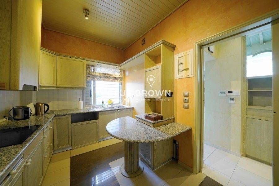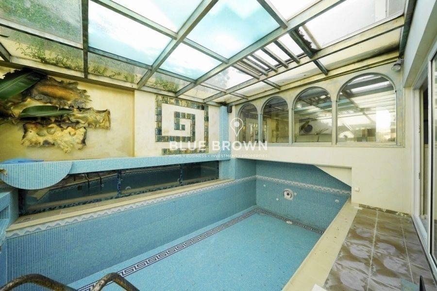 In the southern suburbs of Athens, in Aixoni, Glyfada, an amazing three-story single house of 379 sq.m. is available for sale on a large corner plot of 420 sq.m. This luxurious, bright property is exceptionally investment-worthy, consisting of a basement, ground floor and first floor. It features numerous amenities, including a large indoor swimming pool of 28 sq.m. and a jacuzzi room with a fireplace. The basement includes a bar area, a bathroom and a balcony door leading to the outdoor barbecue area. Additionally, there are two covered parking spaces and a storage room of 4 sq.m. The ground floor comprises the central space with a spacious living room, an additional sitting area with a fireplace, a fully functional kitchen, an office space and two master bedrooms. On the first floor, there are two more master bedrooms. Furthermore, there is an external service room with a kitchen, laundry facilities, and a boiler room. The house comes equipped with electrical appliances, marble and wood floors, aluminum frames with double glazing and screens, electric shutters, large balconies with electric awnings, an internal staircase, a security door, a video phone door and an alarm system (new system both indoors and outdoors). Heating is autonomous per floor with an oil system, and there is also a central air conditioning system and a solar water heater with a boiler. Located in a quiet neighborhood in Glyfada, the property enjoys proximity to a developed market, immediate access to public transportation, proximity to the Glyfada Tennis Club and parks and direct access to the center of Glyfada and the beach.