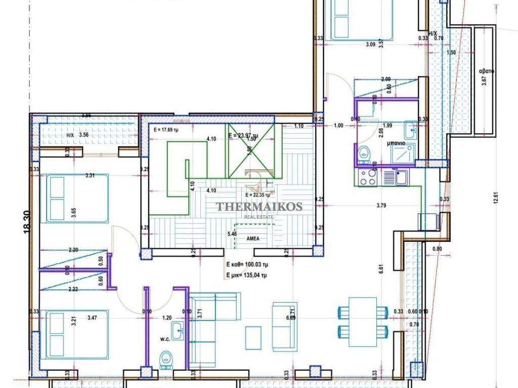 Πωλείται νεόδμητο, οροφοδιαμέρισμα, 132τ.μ., στην περιοχή "Τούμπα - Μαλακοπή". Πρόκειται για ένα πολυτελές, γωνιακό και φωτεινό ακίνητο. Βρίσκεται στον 7ο όροφο της οικοδομής και διαθέτει ασανσέρ. Αποτελεί μια αξιόλογη επιλογή για οικογένειες. Αυτή τη στιγμή βρίσκεται υπό κατασκευή. Αποτελείται από 3 υπνοδωμάτια με ντουλάπες, σαλοκουζίνα, 1 μπάνιο και 1 WC. Επιπλέον διαθέτει βεράντα, αποθήκη και θέση στάθμευσης. Στα εσωτερικά του στοιχεία αξίζει να σημειωθούν η θωρακισμένη πόρτα, ο συναγερμός και η δομημένη καλωδίωση. Διαθέτει κουφώματα αλουμινίου με διπλά τζάμια και είναι εξοπλισμένα με σίτες. Τα δάπεδα είναι από ξύλο και πλακάκια. Διαθέτει αυτόνομη θέρμανση με αντλία θερμότητας (ατομική). Επιπρόσθετα υπάρχει ενδοδαπέδια θέρμανση. Η ενεργειακή του κλάση είναι A. Έχει απεριόριστη θέα. Βρίσκεται κοντά σε στάση λεωφορείου, σχολείο, πάρκο και δάσος. Τιμή πώλησης: 595000€. Κωδικός ακινήτου: 11306 Για περισσότερα ακίνητα επισκεφθείτε την ιστοσελίδα μας http://www.thermaikosrealest.gr. Thermaikos Real Estate Κλεάνθους 39, Θεσσαλονίκη, Ελλάδα http://www.thermaikosrealest.gr info@thermaikosrealest.gr Τηλέφωνο: 2310900700 Κινητό: 6907218688 ΥΠΕΥΘΥΝΟΣ ΑΚΙΝΗΤΟΥ: ΠΑΠΑΔΟΠΟΥΛΟΣ ΛΑΖΑΡΟΣ Προσοχή! Για την υπόδειξη του ακινήτου είναι απαραίτητη η υπόδειξη της αστυνομικής ταυτότητας και του Α.Φ.Μ. σας σύμφωνα με τον Ν.4072/11-4-2012 ΦΕΚ 86 Α.