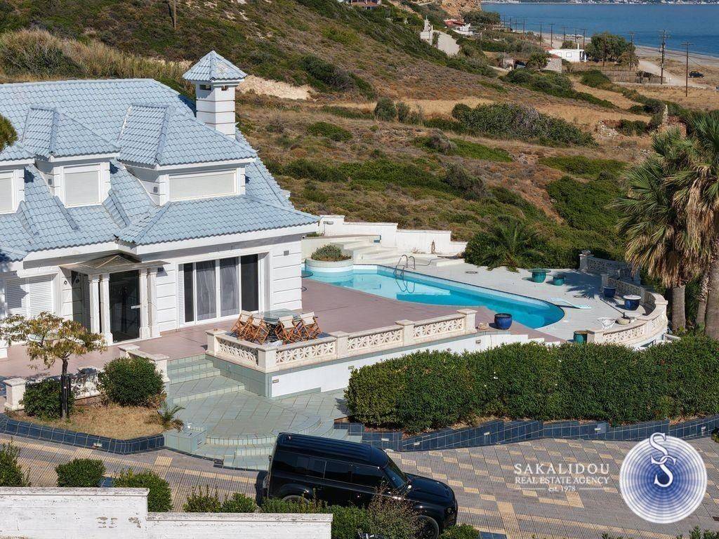 In an idyllic and tranquil seaside location in Evia, stands a unique two-story luxury villa, designed by one of Greece’s most renowned architects. The property impresses with the elegance, comfort, and absolute privacy it offers, making it an ideal permanent residence or an exclusive holiday retreat. The villa unfolds over a total area of approximately 420 sq.m. within a 5,878 sq.m. plot, where indoor and outdoor spaces are harmoniously combined. Inside, it features six spacious bedrooms, five modern bathrooms, two elegant living rooms, two fully equipped kitchens, and a large dining room. The use of high-quality materials, such as granite and marble, adds a sense of timeless luxury. The outdoor areas are equally impressive, with a private swimming pool, landscaped gardens, architectural features such as fountains and outdoor seating areas. The property also includes an independent 50 sq.m. staff residence, as well as a storage facility with a backup generator. Fireplaces, a fully installed heating and cooling system, and a generous layout ensure year-round comfort and functionality. This villa combines exceptional construction quality with refined aesthetics and a privileged location. It is a rare opportunity for those seeking serenity, style, and luxury in one of Greece’s most beautiful destinations.