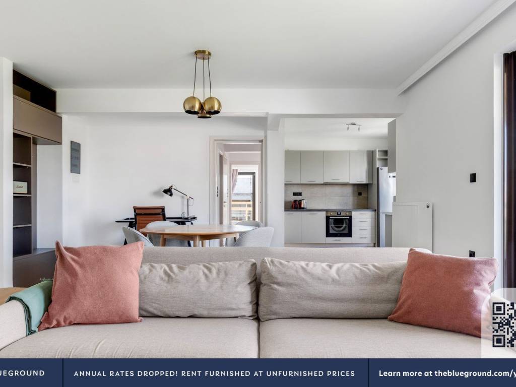 Gorgeous furniture,fully equipped kitchen,smart TV, and a premium wireless speaker are just a few of the amenities you’ll find inside this two bedroom apartment.Ideally located in Athens, you’ll find a lot to love outside as well. When you’re ready to relax, you’ll be happy to discover every Blueground bedroom comes with superior quality mattresses, fully stocked linens, and cozy towels. We handle everything so you can simply show up and start living.