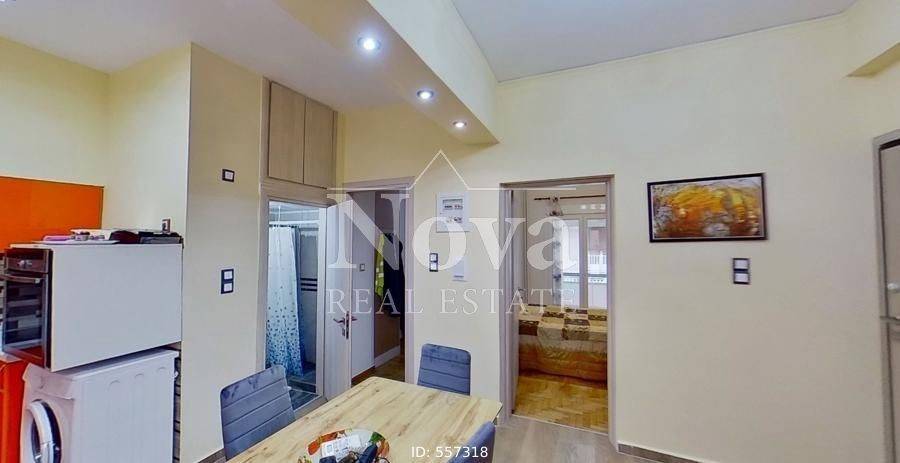 Kolonos - Apartment 51sqm bedrooms 2, raised ground floor, fully renovated, year built 1976, renovation year 2021, energy class F, living room, hall, kitchen, bathroom, wc, air condition, quiet, exposure, luminous, facade, painted, solar heater, storage space in house, aluminum frames, double glaze windows, wood & tile floors, secure door, investment property (return 5%), close to metro/train (up to 500m).