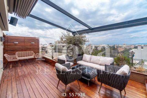 Newly built maisonette 3rd-4th with sea view in Glyfada, 225 sq m. Modern maisonette 225 sq m., two levels (3rd and 4th floor), for sale, ideal for a family who wants a functional and bright space near the sea. The house, built in 2010 and energy class B+, has 4 bedrooms, including 4 master bedrooms, a living room, a separate kitchen, a hall, four bathrooms and a separate wc. It is corner and bright, with large verandas that offer unobstructed views of the Aegean Sea from the upper levels, while the modern design and quality details create a sense of comfort and security. The design includes an internal staircase that connects the two levels, a false ceiling, electric shutters, energy-efficient thermal break frames with double glazing and screens, as well as a thermal facade for better insulation. There is autonomous heating with natural gas, air conditioning, solar water heater, fireplace, 10 sq.m. storage room and parking. The floors alternate between tiles and wood, offering warmth and practicality, while the security door, alarm system, security cameras and video intercom ensure a high level of protection. The maisonette offers luxury without pretentiousness: elevator in the common area, ramp for wheelchairs and easy access, 80 sq.m. private garden for relaxation and barbeque, jacuzzi and space for a small gym. There is satellite connection, awnings on the verandas for shade, lighting with discreet fixtures, and the possibility of using the outdoor space as a continuation of the interior for entertainment. The house is painted and ready for immediate entry, with a modern aesthetic that highlights the lines and everyday functionality. Information about the Glyfada area: The maisonette is located in a quiet neighborhood of Glyfada, up to 1,000 meters from the coast, with direct access to beaches and the port for trips to the sea. The area offers nationally known services: bus/trolley stop approximately 20 meters away, school and market within 100 meters, as well as a super market very close by. For entertainment and dining, nearby hangouts and businesses are available within 200 meters. Glyfada combines urban life with a seaside character, offering a variety of options for daily needs, entertainment and transportation. Overall, this is a newly built maisonette with a clear modern character, designed to meet both comfort requirements and security and energy efficiency needs. Ideal for those who want access to the sea and daily convenience, with full construction and equipment that includes storage spaces, parking, spacious common areas and a private garden. Contact for more information and viewing appointment. Price €1,350,000 (ref. 557938) +302109852016 KALLITHEAkallithea@novarealestate.gr | Web: www.novarealestate.gr. The property address is approximate