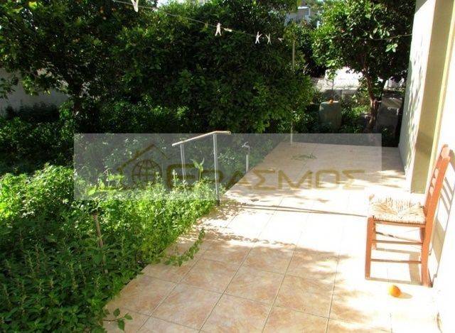 Vrachati village near Korinth, detached house of 136 sq.m. ground floor on a plot of 400 sq.m. and in good condition, next to the beach, with 2 bedrooms, large living-dining room with fireplace, large terraces, garden, large enclosed kitchen, parking, oil heating and energy stove, awnings, alarm with cameras, solar, tiled floors, storage, window frames aluminum with double glazing with screens, next to the market and in a park. It can be divided into 2 apartments