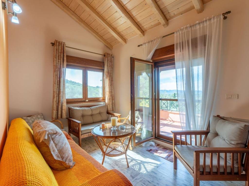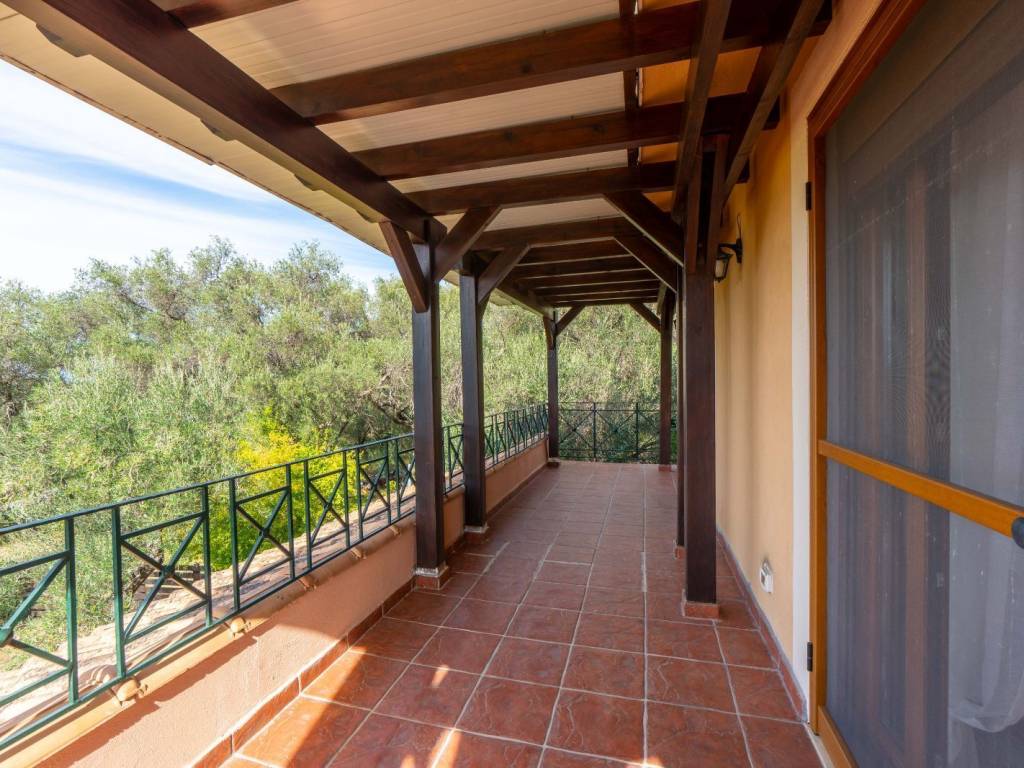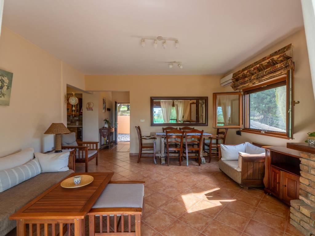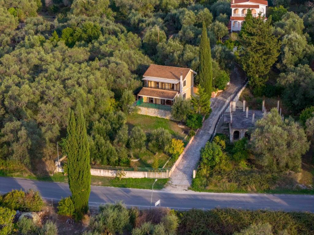 This traditional two-level house is located in the peaceful village of Agii Douli, in North Corfu, surrounded by lovely countryside and mountain views. The property offers 130 sqm of living space and stands on a plot of 761.82 sqm, including a private garage and generous verandas that make the most of the natural setting. The ground floor features a spacious lounge, a separate kitchen, and a WC, while the upper level includes two bedrooms, a second lounge area, and a bathroom. The layout offers flexibility and comfort, ideal for family living or as a relaxing holiday home. Outdoors, the large verandas provide plenty of space for dining, relaxing, and enjoying the quiet rural atmosphere. The property enjoys pleasant views over the surrounding countryside and mountains, creating a true sense of tranquility. The location offers convenient access to the island’s northern resorts — Roda is only a 10-minute drive, Sidari, Arillas, and Acharavi are around 15 minutes away, and Agios Georgios can be reached in approximately 20 minutes. Corfu Town, the port, and the airport are all about 35 km from the property, making it easily accessible yet delightfully peaceful. This charming home combines authentic village living with proximity to several of Corfu’s most beautiful beaches and lively towns — an ideal choice for those seeking comfort, space, and a genuine taste of the island’s countryside life.