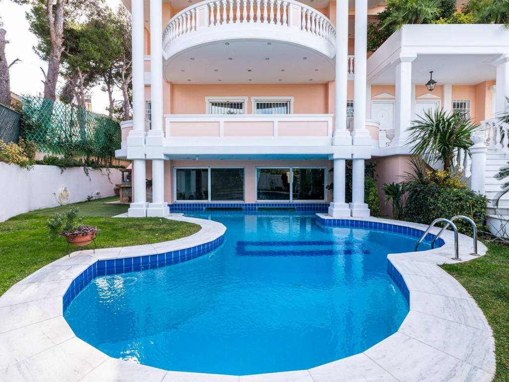 In one of the most privileged and rapidly developing areas of Kifisia, in the Peloponnesians Settlement – Adamés, this impressive residence of 1,010 sq.m. (748 sq.m. main living areas) offers the perfect balance between natural beauty and immediate access to infrastructure and major road networks. The property unfolds across five levels and consists of two independent maisonettes, which can function either separately or as one unified ultra-luxury residence. Property Description: The two maisonettes communicate through a large folding door located on the lower level (217 sq.m.), allowing either complete independence or the creation of a single bright living space overlooking the impressive swimming pool. This level includes two open-plan kitchens, two bathrooms, two bedrooms, and two fireplaces. The architectural and structural design of the property allows for the easy unification of all levels, offering the possibility of converting the residence into one exceptional luxury home. Each maisonette — 400 sq.m. and 348 sq.m. of main living areas respectively — features independent entrances, reception areas, kitchens, bedrooms, bathrooms, and private elevators. On the ground floor, spacious and exceptionally bright reception areas are complemented by large and highly functional open-plan kitchens. On the first floor, generous master bedrooms dominate the layout, with access to large verandas and unobstructed views of Mount Parnitha, along with two additional bedrooms and bathrooms. On the top level of this impressive residence are two loft spaces, each offering comfortable bedrooms, living areas, and bathrooms. A defining feature of the property is the abundance of large balconies on every level, all enjoying open, panoramic views. The interior spaces are spacious, flexible, and highly functional, allowing future owners to reconfigure them according to their needs. The residence is further enhanced by an impressive heated swimming pool of 55 sq.m., while the lower level also includes storage areas, a gym, and three parking spaces. A truly exceptional property and rare opportunity in one of the greenest and fastest-growing areas of Kifisia, offering privacy, luxury, and outstanding quality of living. Location: Adames is a neighborhood of Kifisia that combines natural beauty with the luxury that characterizes this prestigious residential area. Accessibility: Located just a 30-minute drive from the center of Athens and 45 minutes from Eleftherios Venizelos International Airport, the area offers convenient access to every part of the city. Residents can enjoy walks through the area’s beautiful gardens, visit luxury boutiques, and dine at fine restaurants. Kifisia also provides immediate access to excellent educational institutions, medical facilities, and major central road arteries. Unique Features: Experience the rich history, culture, and cosmopolitan lifestyle of Kifisia, a district renowned for its elegance, lush green neighborhoods, and picturesque streets.