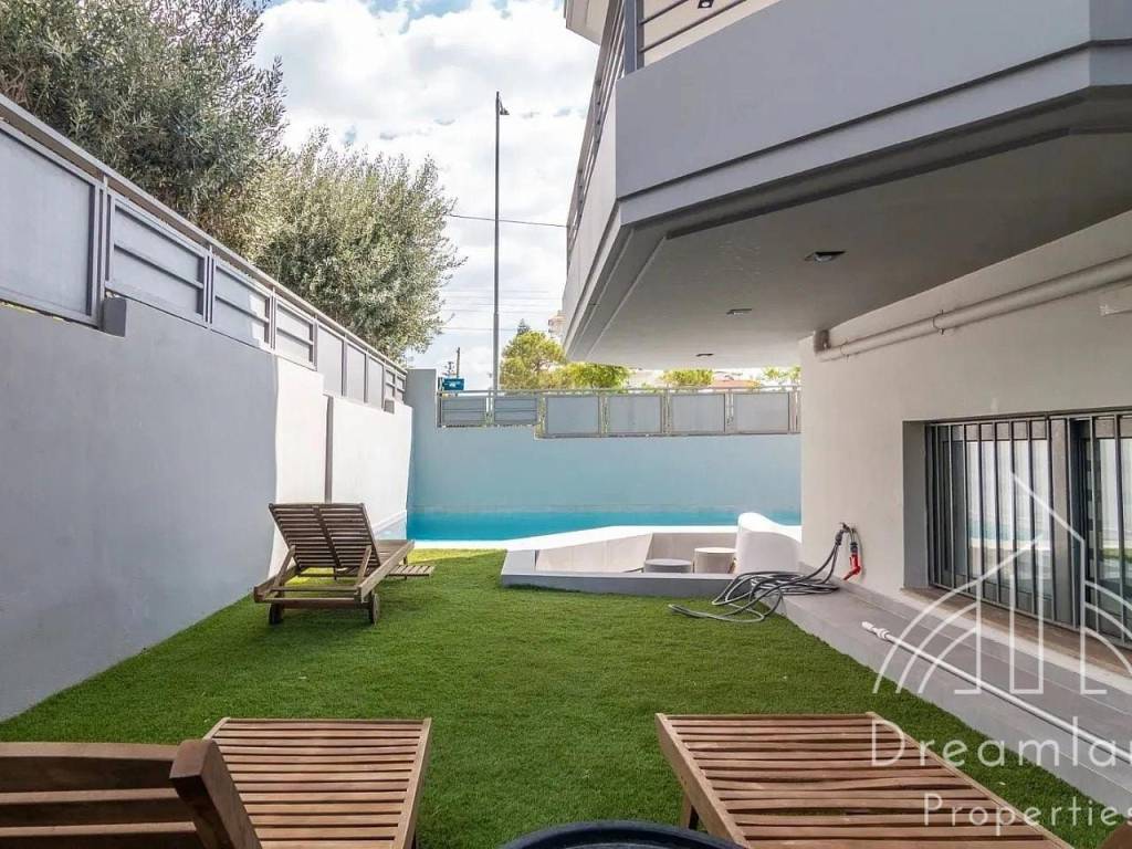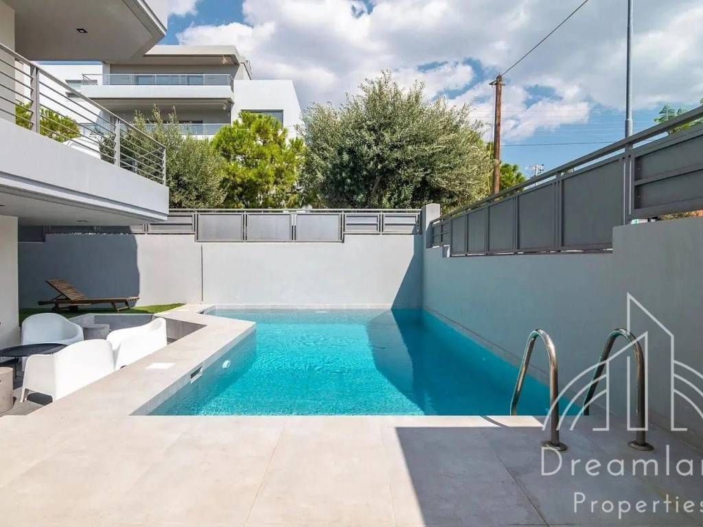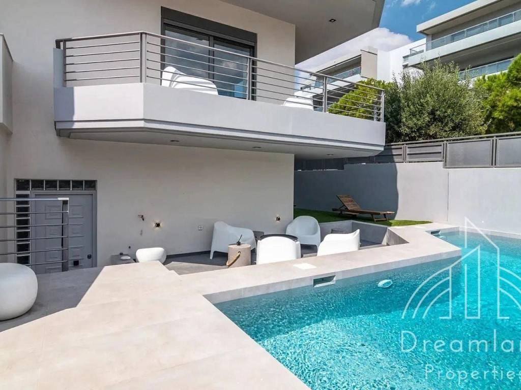 GLYFADA, Golf, Luxurious Detached House 270 sq.m., Basement - Ground Floor - 1st Floor, 4 Bedrooms (1 Master), Furnished, Large Living Room, Spacious Separate Kitchen, 2 Bathrooms, 2 W.C., Renovated in '23, Autonomous Heating with Petrol, Fireplace, A/Cs, Aluminum Window Frames, Double Glazed Panes, Security Door, Internal Staircase, Elevator, Private Garden and Swimming Pool, Jacuzzi, Unlimited Sea View, Close to the Beach, Nice Location, Quiet Area, Fully Furnished and Equipped, We Offer a Wide Variety of the Best Furnished Apartments, Ask For Availability, Price 7.000 Euros (Listing code: 3067).