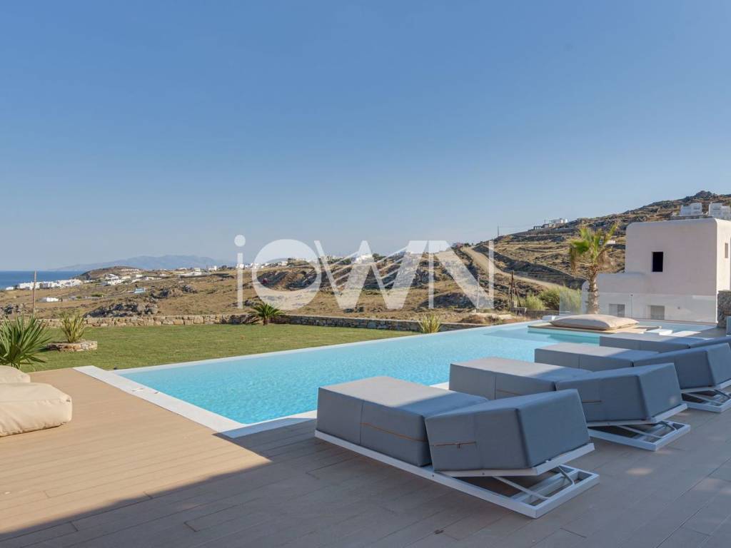 Villa For rent, floor: Ground floor, 1st (2 Levels), in Mykonos. The Villa is 210 sq.m.. It consists of: 5 bedrooms, 5 bathrooms, 1 wc, 1 kitchens, 1 living rooms, Air conditioning are also available, it has Wooden frames with Double glazed windows, the energy certificate is: B and its floors are Wooden, Marble. The property's status is: Renovated, Freshly painted, Very good condition, it is close to Sea, Seaside, it has Sea, Openness, Panoramic, Unobstructed view. The Villa is Painted, Furnished, Bright, Airy, Sunny, Airy, Lower level house, Upper level house, Traditional house, it is suitable for Holiday home and it also has the following unique features and advantages: Electric Appliances, Internal staircase, Swimming pool, Garden, Security alarm, BBQ, Safe Box, Trees, Porch, Internal yard. iOWN, contact phone: 2106728599, email: ioanna.nikolaou@iown.gr, website: www.iown.gr