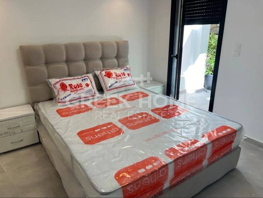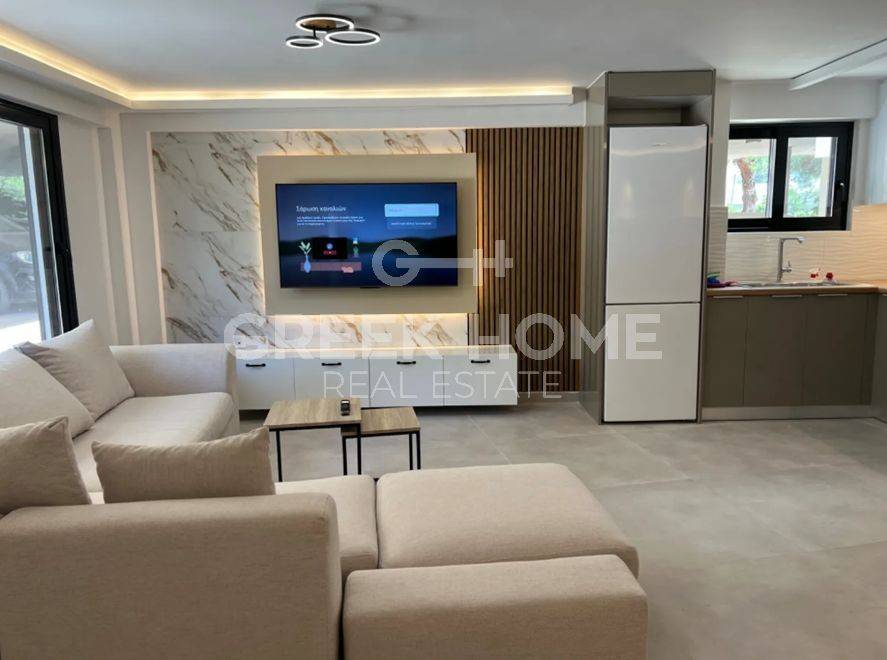 Voula, Kato Voula - Detached House 58sqm fully furnished, bedroom, levels 1, ground floor, excellent condition, year built 1978, renovation year 2024, energy class G, living room, kitchen, bathroom, heating type: autonomous (air condition), quiet, internal plot, painted, electric roller shutters, storage space 2sqm, external thermal insulation, balconies, balcony 25sqm, garden, built in appliances, aluminum frames, double glazed windows, door screen, ceramic tiles floors, without common charges, secure door, alarm, surveillance cameras, video doorbell, luxurious.