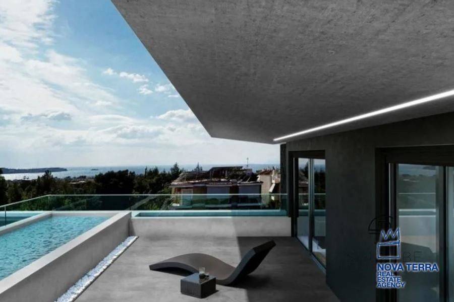 VOULA - DIKIGORIKA, Single Floor Apartment,, Rental, 150 sq.m, year built 2023, 3 rooms, 2nd, View: Mountain view, Seaview, Various Characteristics: Bath (2), Escalator, Kitchen, Store Room, Swimming Pool, Toilet, Master Bedrooms: 1 Master Bedroom, Flooring: Wooden floor, Heating: Floor heating, Aluminium panels, Bright, Double-glazing, From Side to Side, Luxury, Painted, Security Alarm, Security Door, Solar Heating, Tents, In perfect condition: Satellite dish: Parking area: Garage (2), Energy class: A. property ID: 48270, www.nova-terra.gr