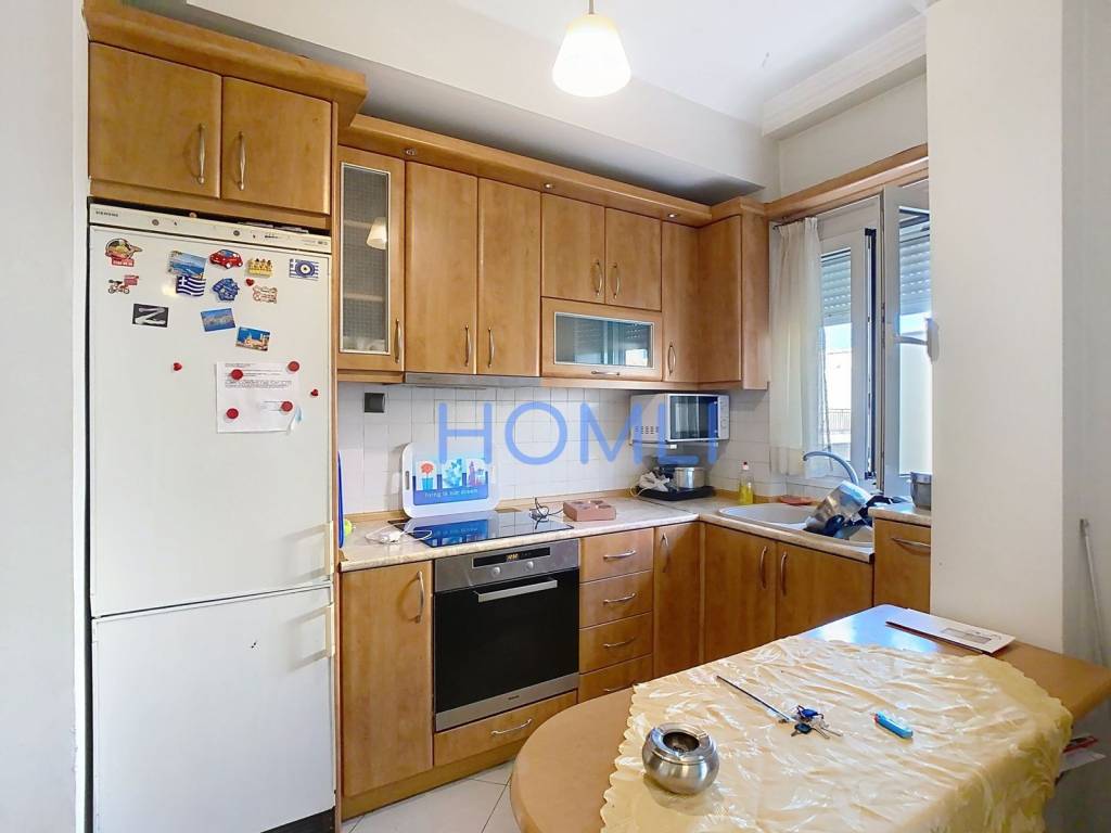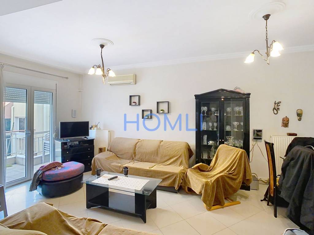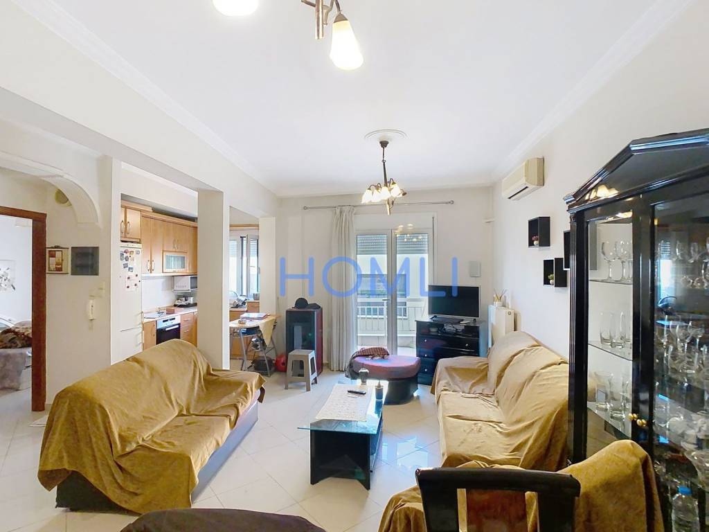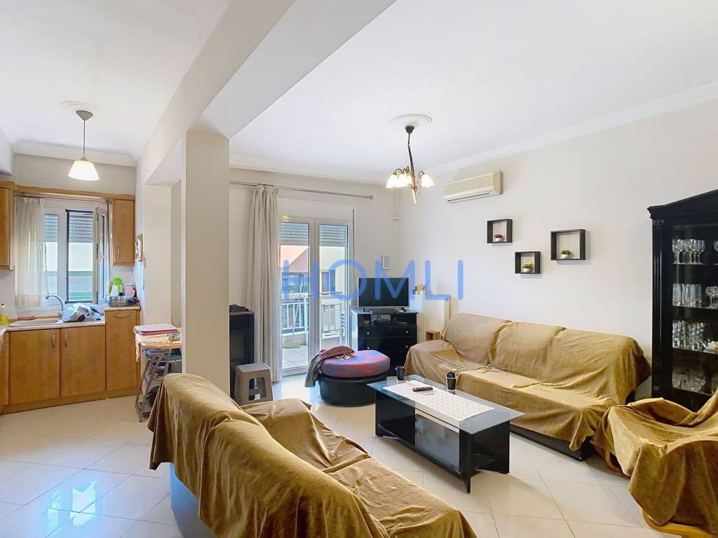 100 sq.m. floor apartment in Sykies. The apartment, with a total area of 100 sq.m., is located on the 1st floor. It is through-front (dual aspect) and features an excellent layout with bright and airy spaces. It consists of a spacious living room with an open-plan kitchen, three bedrooms, one bathroom, and two balconies. Additionally, it includes a storage room, double-glazed window frames, awnings, and air conditioning. It is situated in a privileged location, offering a quiet neighborhood environment with direct access to commercial shops, sports facilities, and food & beverage establishments. HOMLI, property code 26224, please contact us by phone at 210 444 6498.