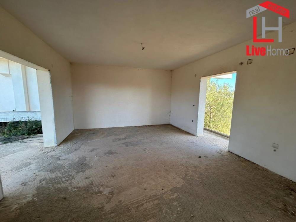 Velo, Krines: For sale Unfinished Detached House - Maisonette 219 sq.m. on 1348 sq.m. plot. The house consists of 3 floors, ground floor 108 sq.m., first floor 97 sq.m. and basement 14 sq.m. It has 4 bedrooms of which 1 is a master, 1 living room-kitchen, 2 bathrooms, storage room and large garden. It is unfinished, in the plastering stage, built in 1983 and has a sea view, 3 parking spaces. The property is recommended as a good investment, as it can be formed into two independent large apartments. It is ideal for families. EXCLUSIVELY FROM LIVEHOME REAL ESTATE AGENCY. AGAPIDIS E,E. ATHENS - CORINTHIANS. Price 124,000€ | Property Code: #GPA 16089