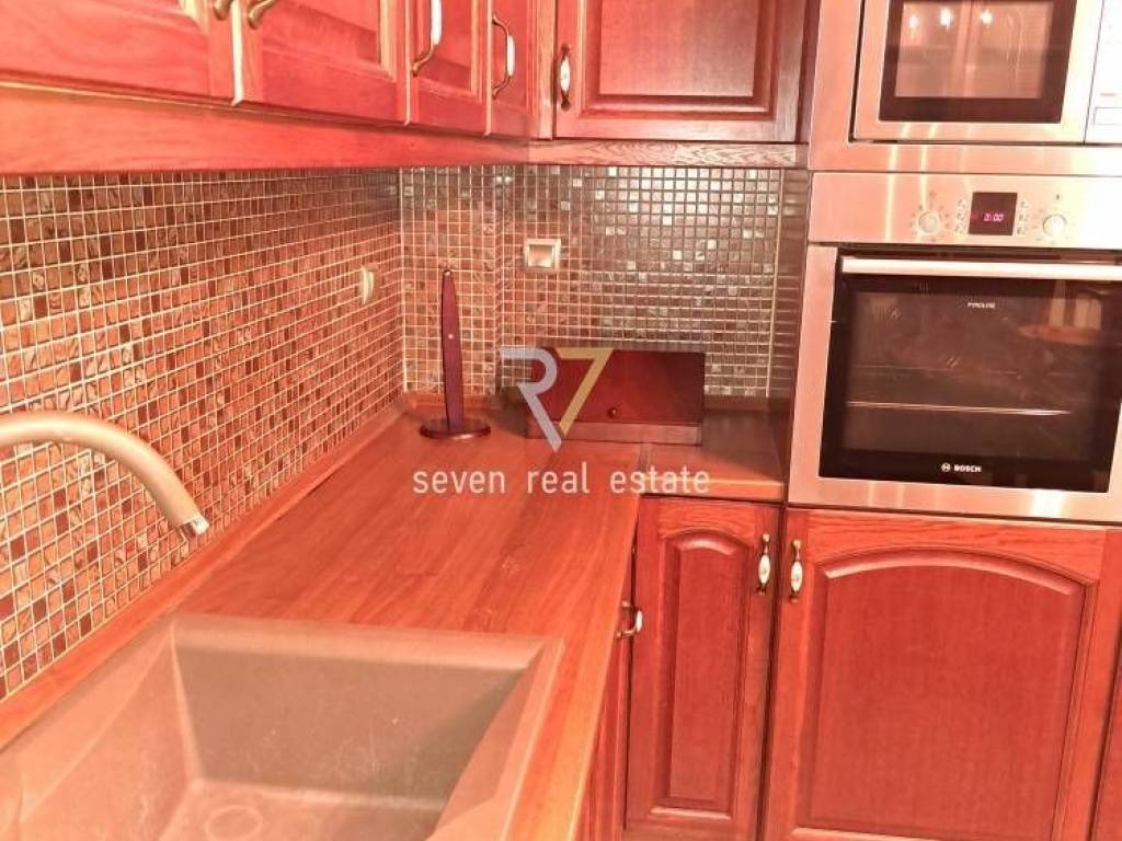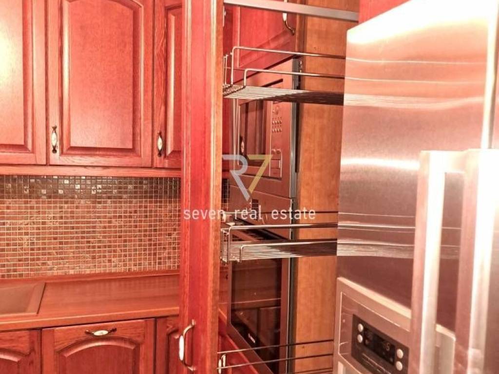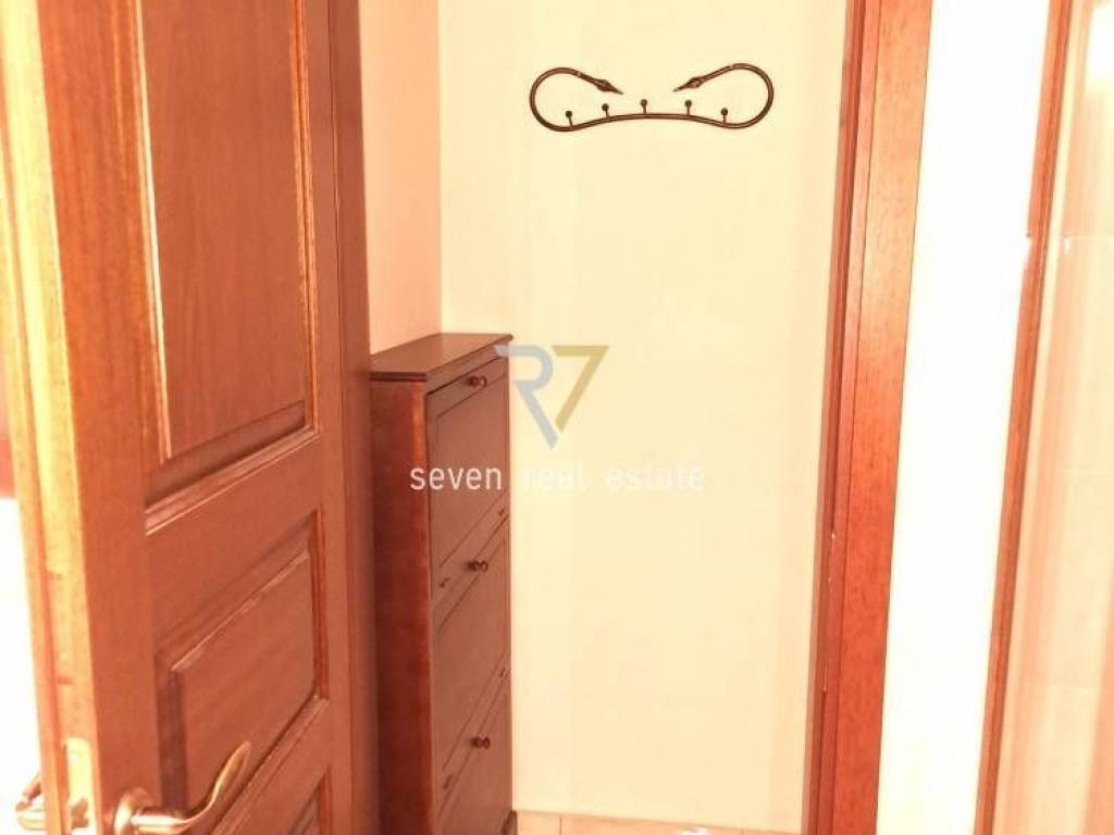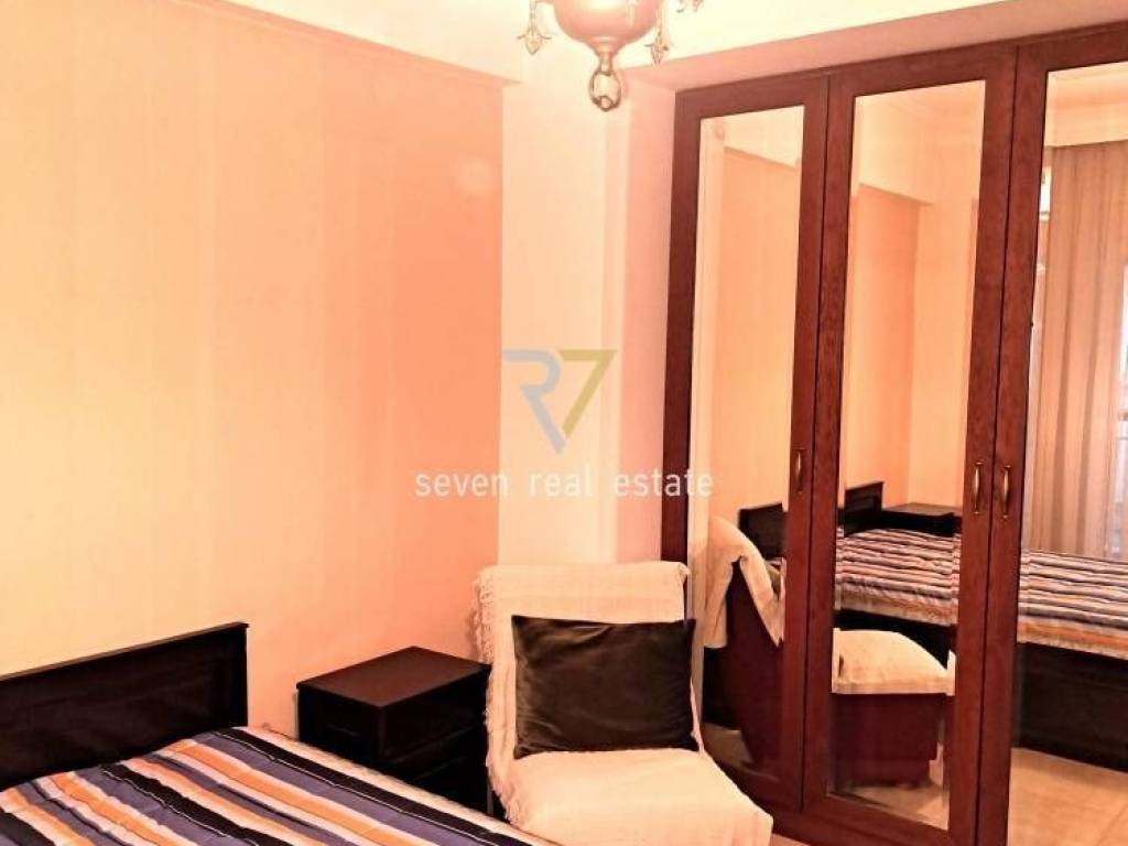 Thessaloniki, Ano Toumpa: Luxurious, bright, 95 sq m. apartment for rent on the 3rd floor with elevator and individual natural gas heating. It consists of 2 bedrooms, a large living room and kitchen and a bathroom. It is fully furnished, equipped, with all electrical appliances, built in 2006 and has 3 verandas with a pleasant view, synthetic frames with double glazing, screens, electric awnings, heavy-duty armored door, new air conditioning, wardrobes in the rooms, tiled floors and parking space in the basement. It is ideal for families. It is located in a very well-maintained building and close to the market, schools and with easy access to the regional road. Price 800€ | Property Code: #38376
