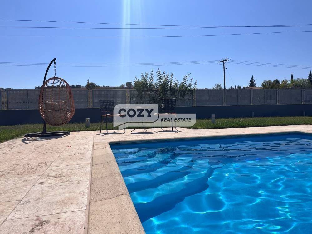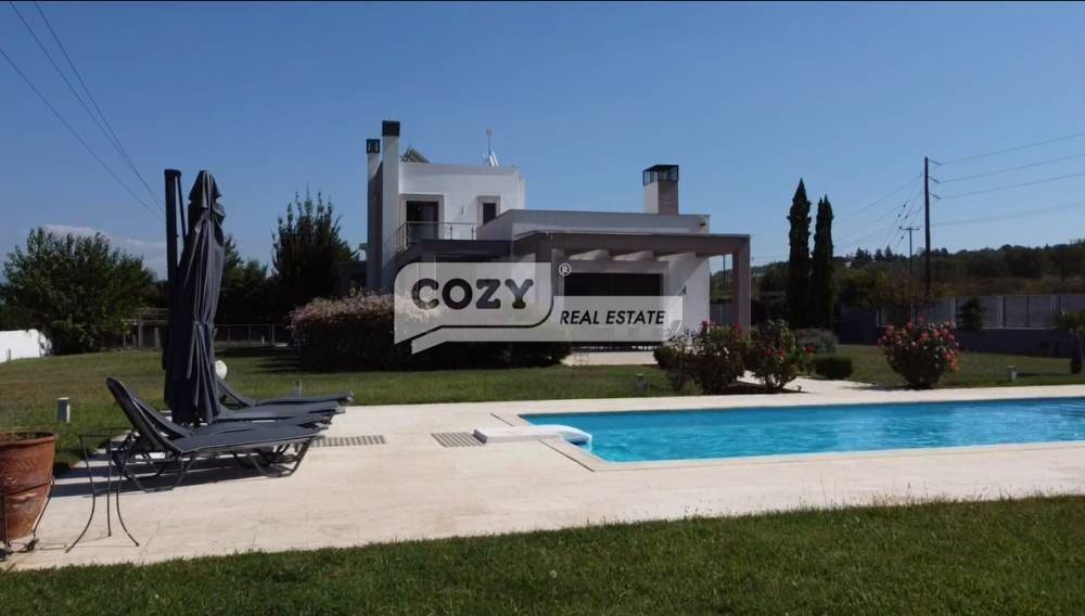 Close to zero, on the Perea-Thessaloniki road... Villa for sale 470 sq.m. in 2800 sq.m. plot... It is of excellent construction and luxuriously furnished.. 3 levels with geothermal energy heating. It consists of: a 2-storey maisonette and a large apartment, in the bright basement, connected by an internal staircase and elevator, there is also a separate entrance for the apartment which operates independently... On the ground floor we see the large living room with French energy fireplace, access to the terrace and in the garden with the 50 sqm pool, elevated dining room with its terrace, kitchen [GRUPPO CUCINE] with all electrical appliances and its terrace, guest toilet, bedroom with its own bathroom... on the 1st floor we have the bedroom with bathroom, separate dressing room, room with huge terrace and unlimited view! In the apartment we have living room, bathroom, large bedroom, kitchen, room, 3 storage spaces, living room, kitchen, room with its bathroom, large laundry room, bathroom and storage room.. wonderful garden with swimming pool and bb area with all amenities as well as wc with shower, 4 parking spaces, fan coil, alarm, satellite antenna.Visa accepted... Price 650000€ | Property Code: #738128 cozy