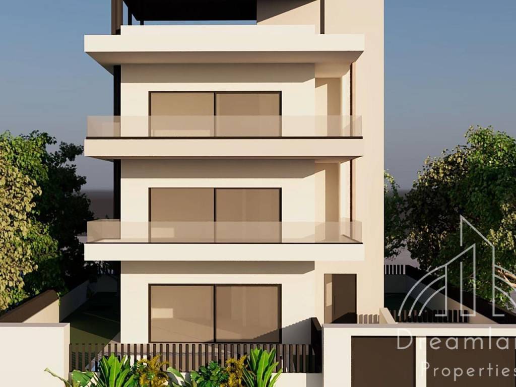 GLYFADA Aixoni, Newly- Built Luxurious Apartment 95 sq.m., 1st Floor, 2 Bedrooms, Open Plan Large Living Room - Kitchen, 1 Bathroom, W.C., Autonomous Underfloor Heating with Heating Pump, Air Conditioning, Fireplace, Solar Water Heater, Security Door, 2 Underground Parking Spots, Storage Unit, Large Verandas, Aluminum Frames, Double Glazed Windows, Wooden Floors, Luxurious Construction, Minimal Aesthetics, Under Construction, Price 700.000 Euros (Listing code: 4275).