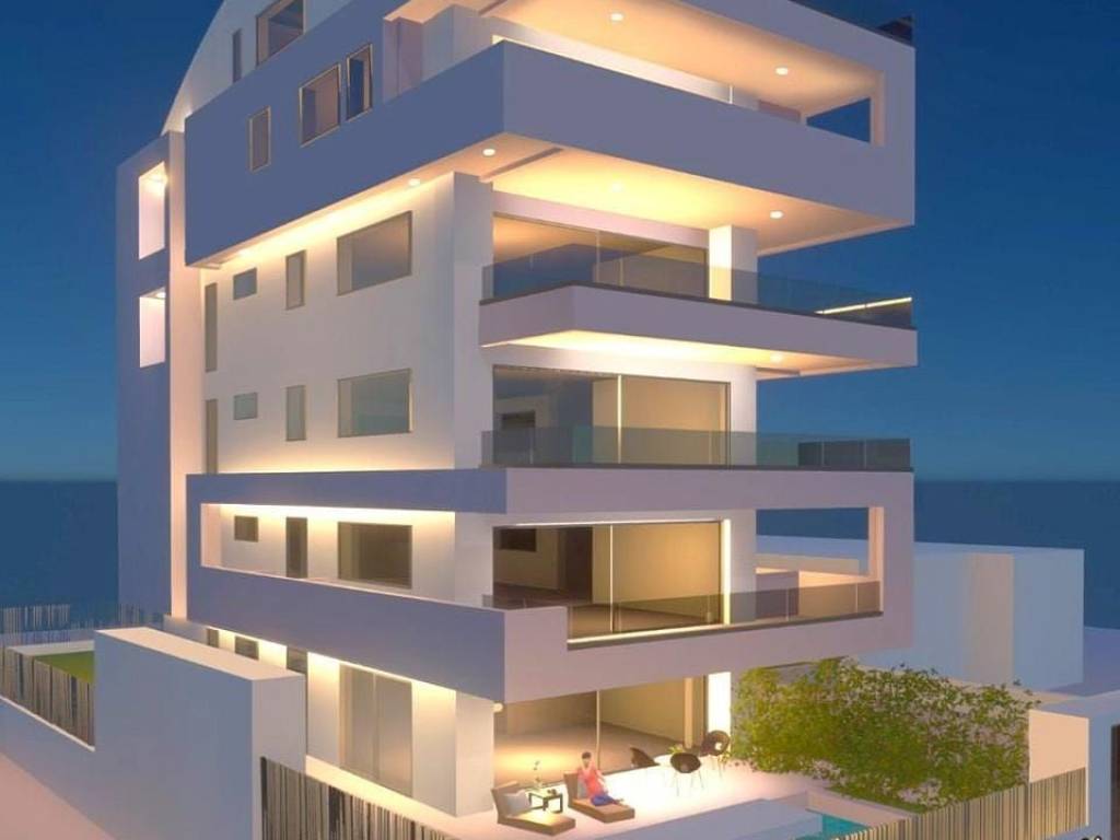 GLYFADA Aixoni, Newly-Built Luxurious Maisonette 195 sq.m., 4th - 5th Floor, 3 Bedrooms, Open Plan Large Living Room - Kitchen, 3 Bathrooms, W.C., Autonomous Underfloor Heating with Heating Pump, Air Conditioning, Solar Water Heater, Security Door, Large Verandas, Unlimited View, 2 Parking Spots, Aluminum Frames, Double Glazed Windows, Wooden Floors, Luxurious Construction, Minimal Aesthetics, Under Construction, Price 1.150.000 Euros (Listing code: 4277).