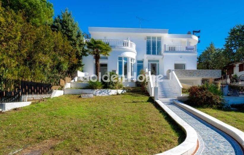 For sale in the center of Oraiokastro is an exceptional three-level villa with a total surface area of 600 sq.m., situated on a 1,000 sq.m. plot, fully fenced with a gate and wire fencing, offering absolute privacy and security. The property was built in 2015, has an Energy Class C rating, and stands out for its architecture, high-quality construction, and spacious, functional layout. The villa is developed over three levels. The basement features a large sauna, a fully equipped gym area, a storage room, three enclosed parking spaces, and a car wash area. The ground floor, covering 300 sq.m., consists of a spacious living room with a fireplace, a dining area, an independent kitchen, a WC, and a storage room. On the first floor, there are five bedrooms and three bathrooms, one of which is a master bedroom with a private en-suite bathroom and jacuzzi, as well as a fireplace. Surrounding the floor are balconies totaling 50 sq.m., offering unlimited views of the lush green garden. Heating is autonomous with natural gas and a new boiler. The property also features synthetic window frames with double glazing, marble floors, a reinforced security door, built-in wardrobes, an internal staircase, and ample storage spaces. The 1,000 sq.m. garden is impressively landscaped with ornamental plants, lawn areas, stone pathways, decorative terraces, and pergolas, creating an ideal setting for relaxation and entertaining. This is a unique high-specification residence, ideal for private use with absolute privacy or as an investment opportunity in one of the most sought-after areas of Thessaloniki. For Sale, detached, Full Bathrooms: 4, Half Bathrooms: 1, Living Area: 600 Sqm, Rooms: 5, Year Built: 2016, Holiday Home, Air Conditioning, View, Balcony, Garden, Internal Stairs, Secure Door, Alarm, Storage Space, Garage, Floor Number: Ground Floor, Facade, Pets Allowed, Satellite Receiver, Airy, Bright, Kitchens: 1, Joinery: Synthetic, Floor Type: Marble, Lot Size: 1000 Sqm, New Development, Levels: 3, Heating Controller: Autonomous, Heating Medium: Natural Gas, Road Type: Asphalt, Unfinished, Energy Class: B, Current: Single Phase
