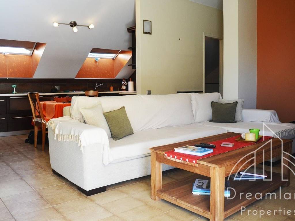 VOULA Nea Kalymnos Area, Penthouse Apartment 85 sq.m., 3rd Floor, 1 Spacious Bedroom, Furnished, Bathroom, '90 Construction Year, Renovated in '09, Autonomous Heating with Petroleum, Air Conditioning, Fireplace, Security Door, Partial Sea View, Open Plan Kitchen with Living Room, Build in Appliances, Veranda, Tents, Aluminum Frames, Double Glazed Windows, Excellent Condition, Quiet Area, Bright, Fully Furnished and Equipped, We Offer a Wide Variety of the Best Furnished Apartments, Ask For Availability, Price 1200 Euro, (Listing code:1323).