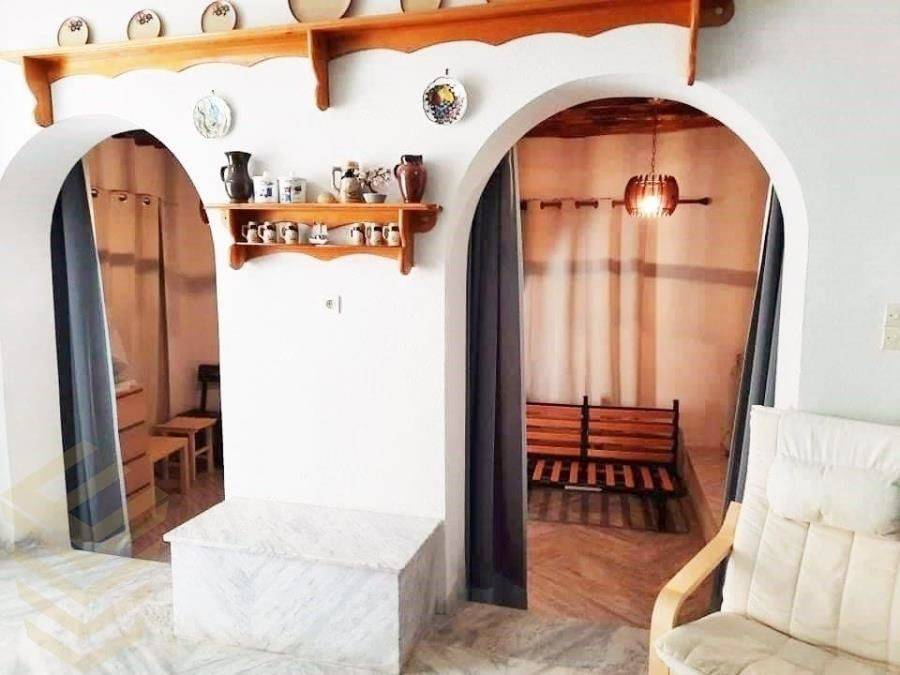 In the heart of the picturesque capital of Kythnos, a two-storey house of 116 sq.m. is for sale. Built in 1982. The ground floor consists of an open plan living area with an open kitchen, a large room that can be used as a bedroom and a bathroom. Going up to the second level from the internal staircase (there is also an external entrance that can turn the house into two different independent apartments) there are two bedrooms with large bathrooms. The house also has a large terrace with distant sea views. Code : 241, Price: 300.000 €. Elinic Real Estate, Tel. Contact: 00302114217985, email: info@elinic.gr