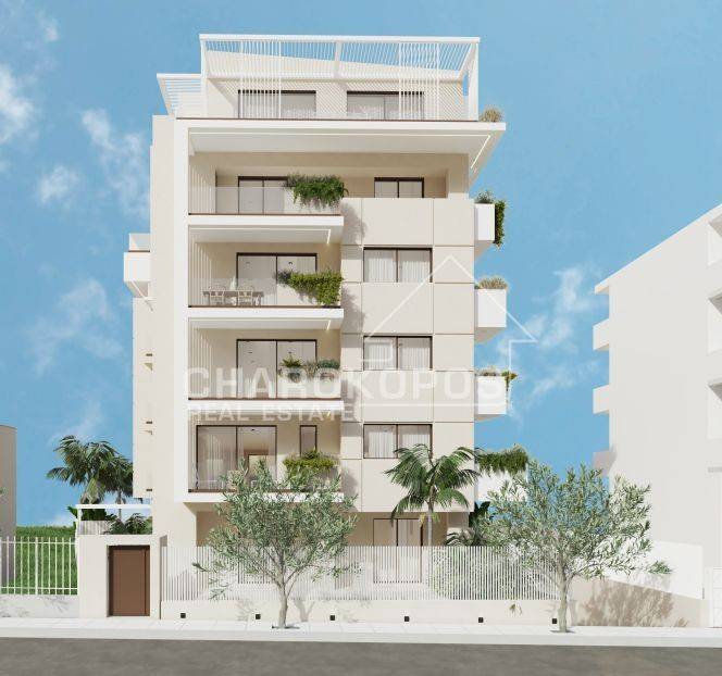 Ground floor apartment for sale with an area of ​​129 sq m. It consists of a reception area, kitchen, three bedrooms and a dressing room, two bathrooms and a WC. It is equipped with a heat pump, underfloor heating and an air conditioning unit (with ducts). It has energy-efficient aluminum frames with double glazing, screens, bioclimatic fireplace, water heater, solar water heater, pre-installation of an alarm, video door entry system. It has verandas. It also includes a 10 sq m storage room and two closed parking spaces. The property has exclusive use of the surrounding area - a 230 sq m garden and a 25 sq m swimming pool. Delivery February 2027. The location on the map does not indicate the exact location of the property, but is close to it. The brokerage fee in case of purchase and sale amounts to 2% of the total actual value of the main contract plus the legal VAT (24%). It is necessary to provide ID and VAT number for the indication of the property. On our website: https://www.charokopos.gr/ you can find more information and properties.