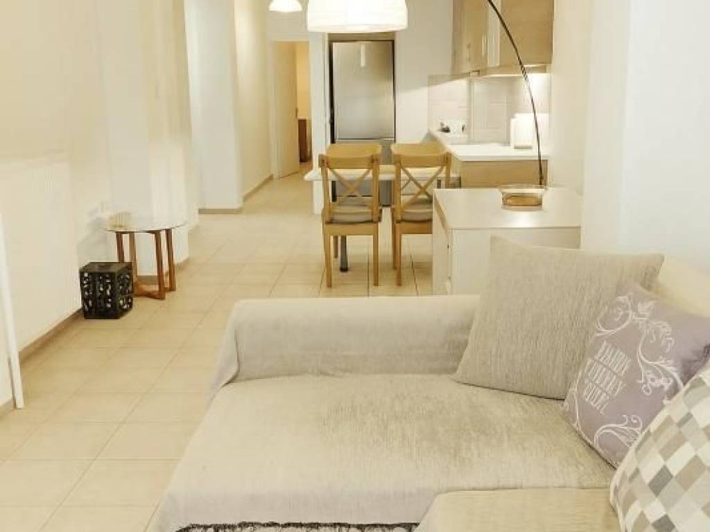 Ενοικιάζεται διαμέρισμα 77τμ, ανακαινισμένο, με ή χωρίς έπιπλα, με σύγχρονες ηλεκτρικές συσκευές και φωτιστικά, υπερυψωμένου 1ου ορόφου Δύο υπνοδωμάτια με ντουλάπες, καθιστικό, κουζίνα, μπάνιο, πατάρι. Πόρτα ασφαλείας, ηλεκτρικά ρολά ασφαλείας, διπλά κουφώματα αλουμινίου με ανάκληση, σίτες παντού. Δύο κλιματιστικά (Α+++), ψυγείο, εντοιχισμένος φούρνος με κεραμικές εστίες. Θυροτηλεόραση, κεντρικός ταχυθερμαντήρας νερού (30% εξοικονόμηση ρεύματος), κεντρική θέρμανση πετρελαίου, κεντρική ψηφιακή κεραία τηλεόρασης με παροχή σε όλα τα δωμάτια.