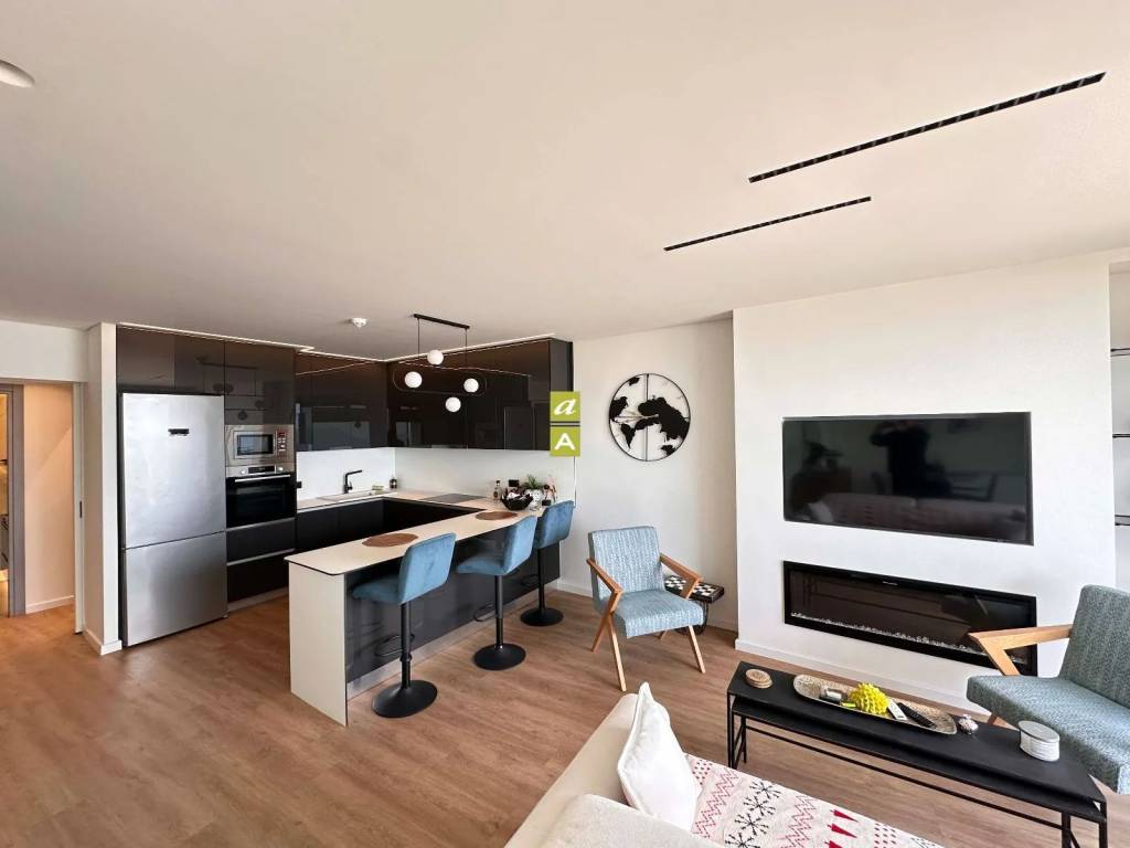 Luxury 6th Floor Penthouse (100 sqm) with Unobstructed Sea View Experience the epitome of coastal living in this stunning, fully furnished apartment overlooking the Patraic Gulf and the Patras Marina. This 100-square-meter residence combines high-end aesthetics with premium comfort. ✨ Interior & Design The apartment is meticulously designed and fully equipped with top-tier furniture and appliances: Living Area: Spacious lounge featuring a premium leather sofa, a cozy fireplace, and a large Smart TV. Dining & Kitchen: An open-plan dining area with a buffet, and a modern chef's kitchen with a central island, fully equipped with all electrical appliances. Bedrooms: Two (2) elegantly furnished bedrooms with double beds and ample wardrobe space. One bedroom features an en-suite bathroom. Outdoor Living: Large balconies with electric awnings, offering breathtaking panoramic views. ️ High-End Features & Energy Efficiency Glazing: Ultra-efficient A+++ energy-rated window frames with insect screens. Climate Control: Inverter Air Conditioning units in every room & Solar Water Heater. Automation: Electric shutters and awnings for effortless light control. Security: Reinforced armored door. Ideal For: Executives or Expats. Couples or single professionals seeking a premium lifestyle. Monthly Rent: €1,500