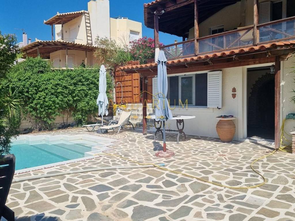 Property Code: 542 - House FOR SALE in Kalivia Thorikou Lagonisi for € 430.000 . This 220.00 sq. m. House consists of 3 levels and features 4 Bedrooms, 2 bathrooms . The property also boasts Heating system: Autonomous heating - Oil, tiled floor, view of the Sea, Window frames: Aluminium, Security door, parking, a storage unit sqm, garden, fireplace, swimming pool, insect screens, double-glazed windows. The building was constructed in 1995 Plot area: 841 s.q. . Building Energy Rating: D