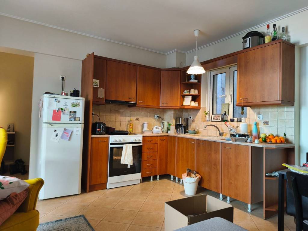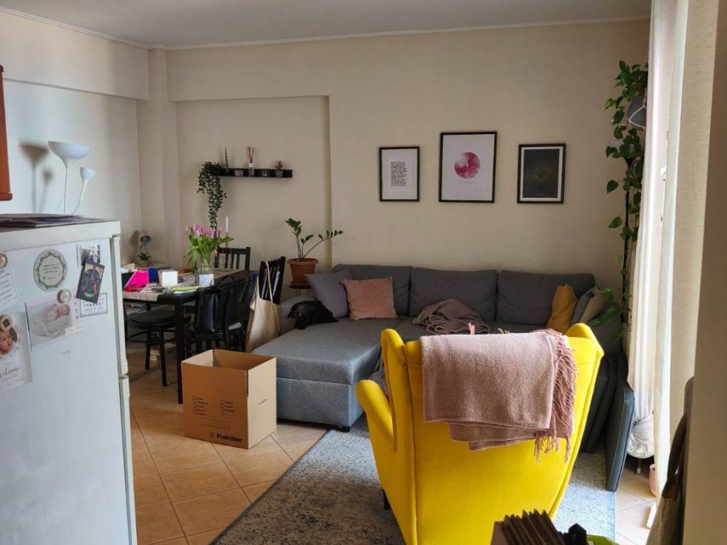 New apartment in kypseli area near to busses and trolleys calmly area 56tmeters one room salloon big kitchen two balconies safe door near to coffee shops and supermarket toilet with big bathroom quiet and peacefully area price 600 euros per month