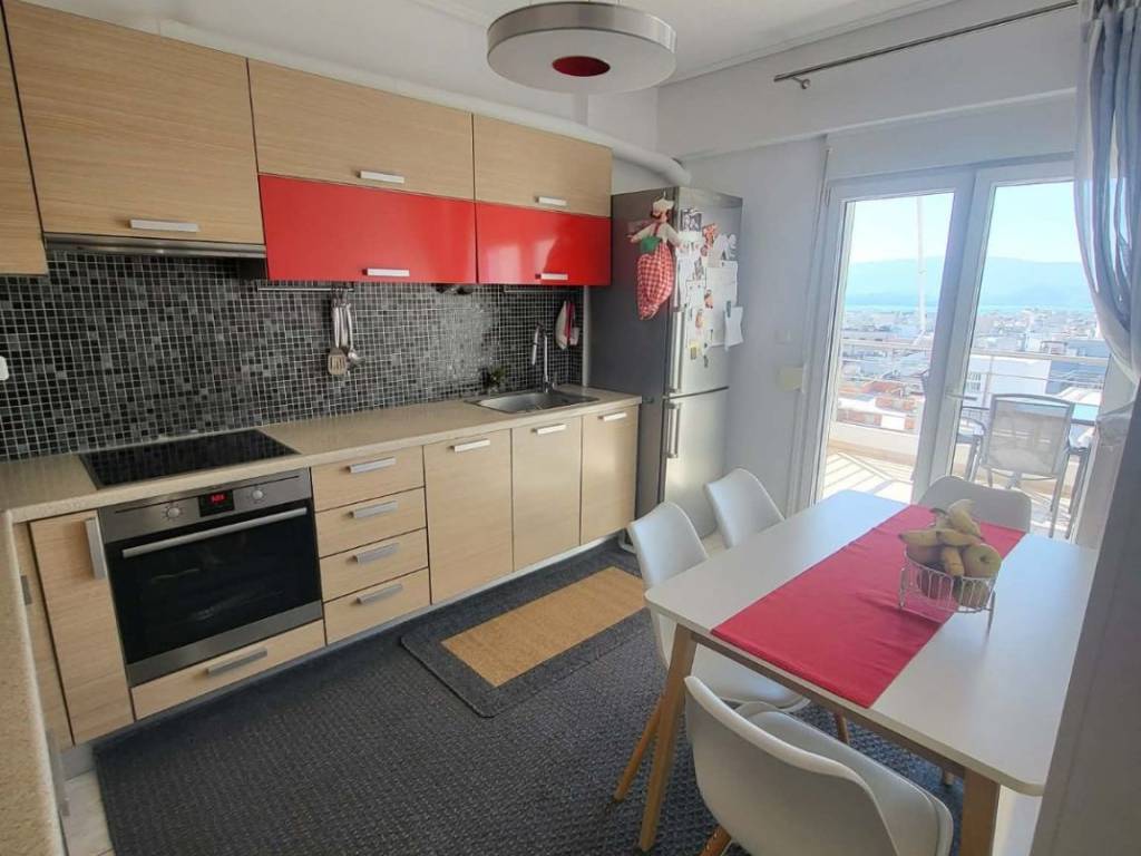 Διατίθεται κατ' αποκλειστικότητα προς πώληση στην Νέα Δημητριάδα Βόλου, εξαιρετικό διαμέρισμα Δ’ ορόφου εμβαδού 84,20τ.μ.. Το ακίνητο είναι διαμπερές, γωνιακό, φωτεινό καθ’ όλη τη διάρκεια της ημέρας και προσφέρει ανεμπόδιστη και απεριόριστη πανοραμική θέα στην θάλασσα, την Γορίτσα και την πόλη του Βόλου. Το έτος κατασκευής είναι το 2005 και η Ενεργειακή του Κατηγορία Γ. Το ακίνητο διαθέτει συνθετικά κουφώματα με διπλό υαλοπίνακα και σίτες, ηλιακό θερμοσίφωνα στο δώμα, τρία κλιματιστικά, ατομικό λέβητα Φ. Αερίου, θωρακισμένη πόρτα ασφαλείας, προεγκατάσταση τζακιού, θέση στάθμευσης αυτοκινήτου στην πυλωτή και αποθήκη υπογείου επιφάνειας 9,50τ.μ.. Είναι άψογα διατηρημένο και προσφέρει καλή λειτουργική διαρρύθμιση για να καλύψει τις ανάγκες μίας οικογένειας. Αποτελείται από 3 υπνοδωμάτια, λουτρό, ενιαίο χώρο καθιστικό – τραπεζαρία και χώρο κουζίνας. Επιπλέον όλοι οι χώροι έχουν πρόσβαση σε εξώστες. Βρίσκεται σε κοντινή απόσταση από χώρους πρασίνου, σχολεία πρωτοβάθμιας και δευτεροβάθμιας εκπαίδευσης, και δημόσιες συγκοινωνίες.