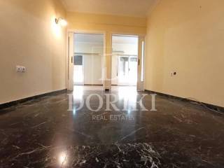 Galatsi - Apartment 101sqm bedrooms 3, levels 1, 4th, good condition, year built 1972, energy class G, living room, hall, kitchen, bathroom, wc, heating type: central (natural gas), air condition, luminous, corner, unobstructed view view, frontage, balconies, large balconies, tents, elevator, loft storage, wooden frames, door screen, wood & marble floors, handicap ramp, separate kitchen, secure door, residential zone, north-eastern orientation, access from asphalt, investment property, commercial use, close to school (up to 500m), close to market (up to 50m), close to square (up to 200m), close to sports facilities (up to 1000m), close to park (up to 1000m), close to bus stop (up to 100m).