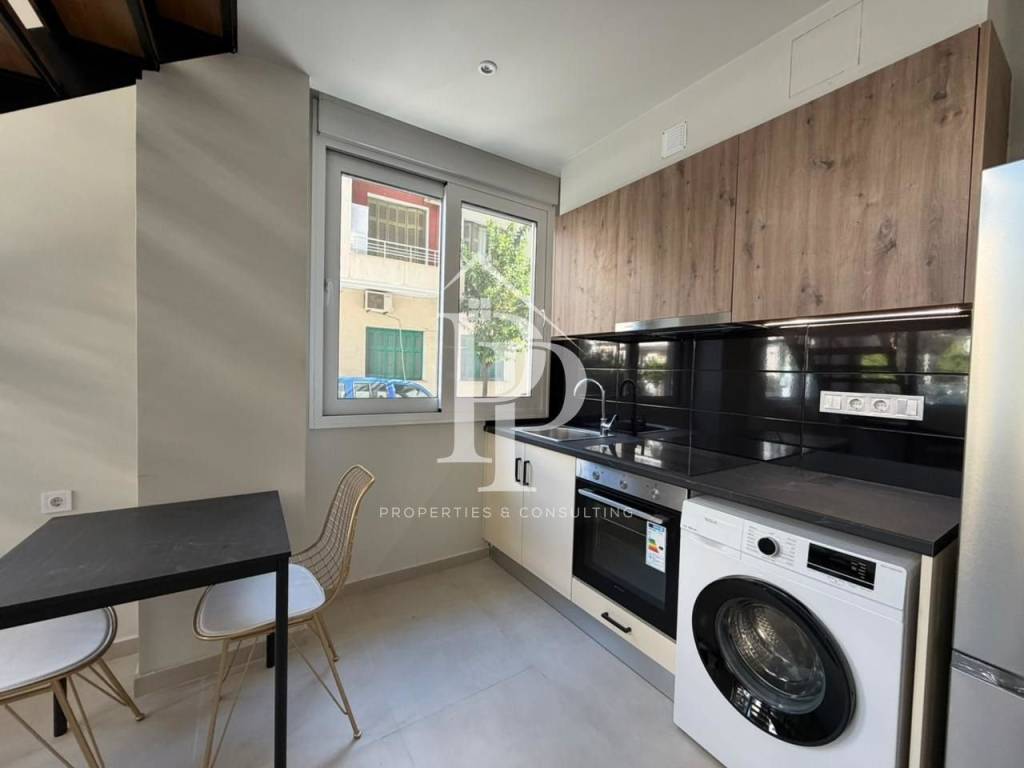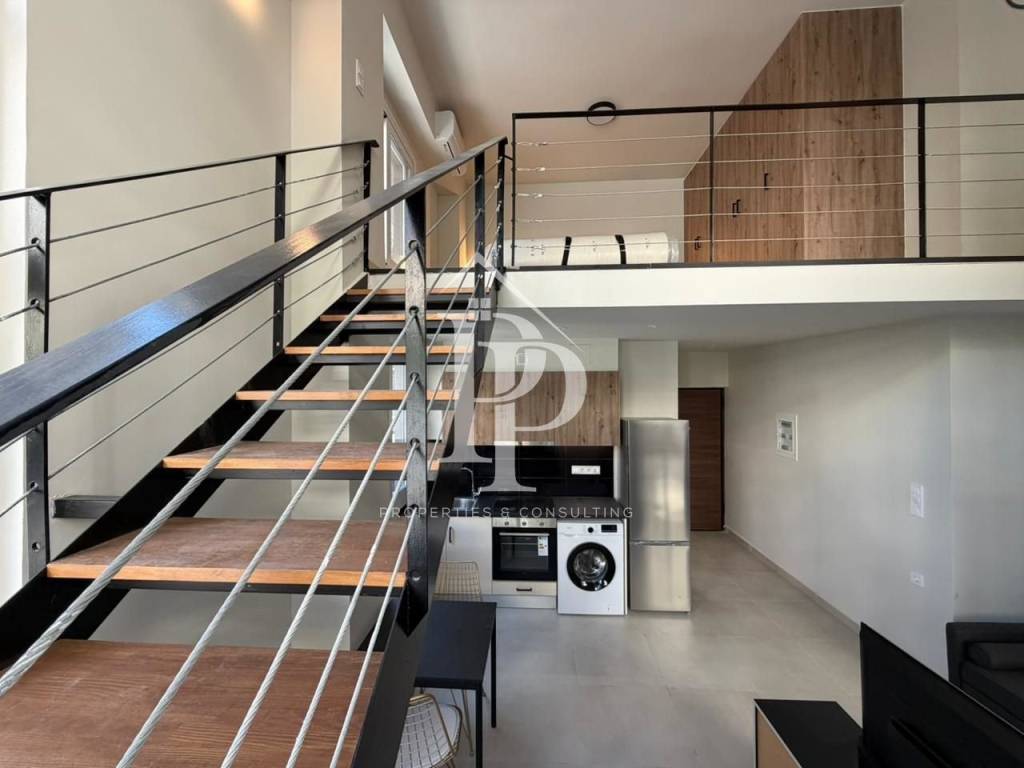 A unique ground floor loft of 50 sqm. is available for rent located in an excellent location in Piraeus, 400m. from Marina Zeas, 300m from the hospital "Tzaneio", in close proximity to public transport and the market. The property consists of two levels. On the first level there is an open bright space with a living room - kitchen and a bathroom. On the second level there is a bedroom with spacious wardrobes. It was fully renovated in 2025 and its condition is excellent The property is fully furnished with brand new electrical appliances (built-in: hobs, washing machine, oven, refrigerator, TV). It has aluminum frames with double glazing. There is also air conditioning and a security door. PP Properties & Consulting.